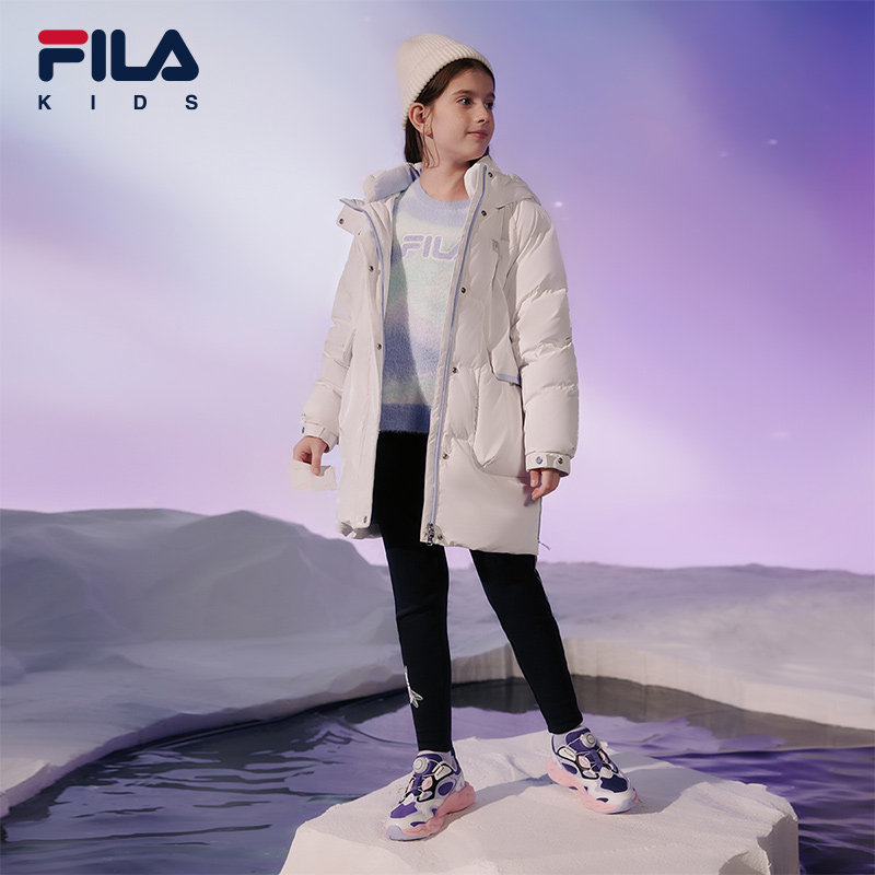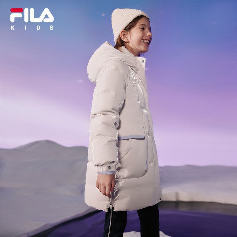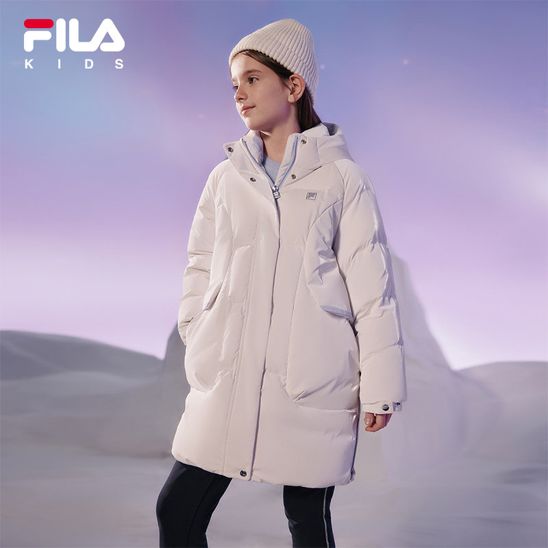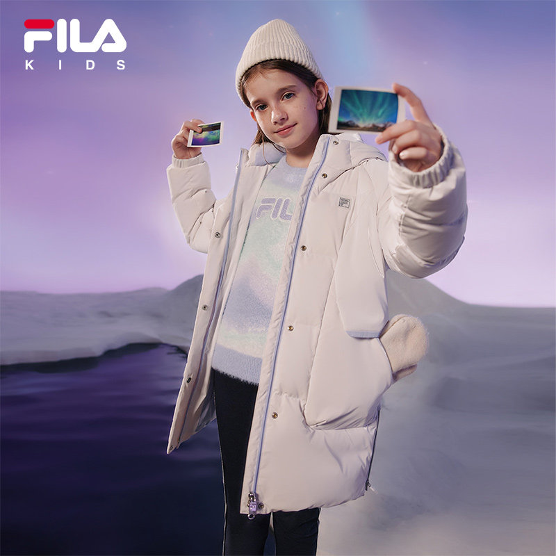 FILA Filaboy clothing children's duvet clothes 2023 Winter new ladies Duck suede warm medium long jacket-Taobao