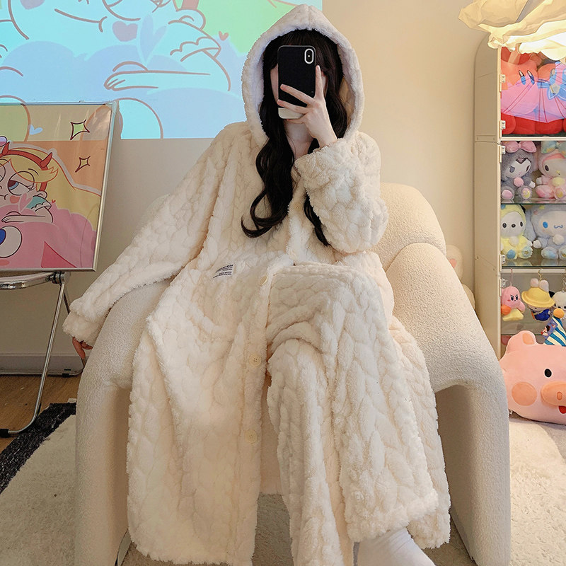 2023 New Coral Suede Pajamas Woman Autumn Winter Sleeping Robes Long gushed Thickened Flannel Suede Suit-Taobao