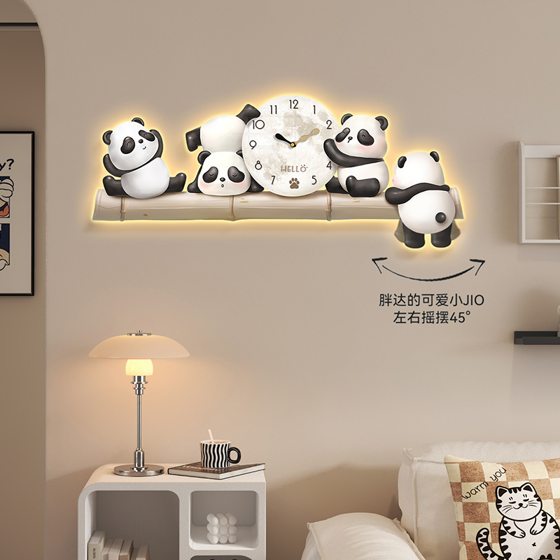 Beauty Seda Living Room Watch Panda Hang Clock 2023 New minimalist silent Home Restaurant netting Red clock hanging wall-Taobao