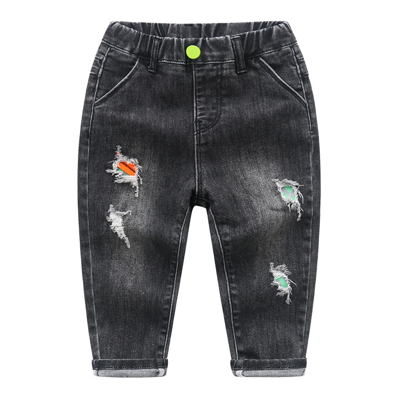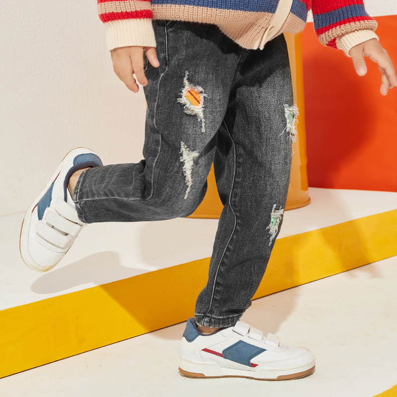 Boy pants Spring and fall Children's clothes 2023 Autumn clothes new boy Long pants mid-boy baby break Hole Jeans-Taobao