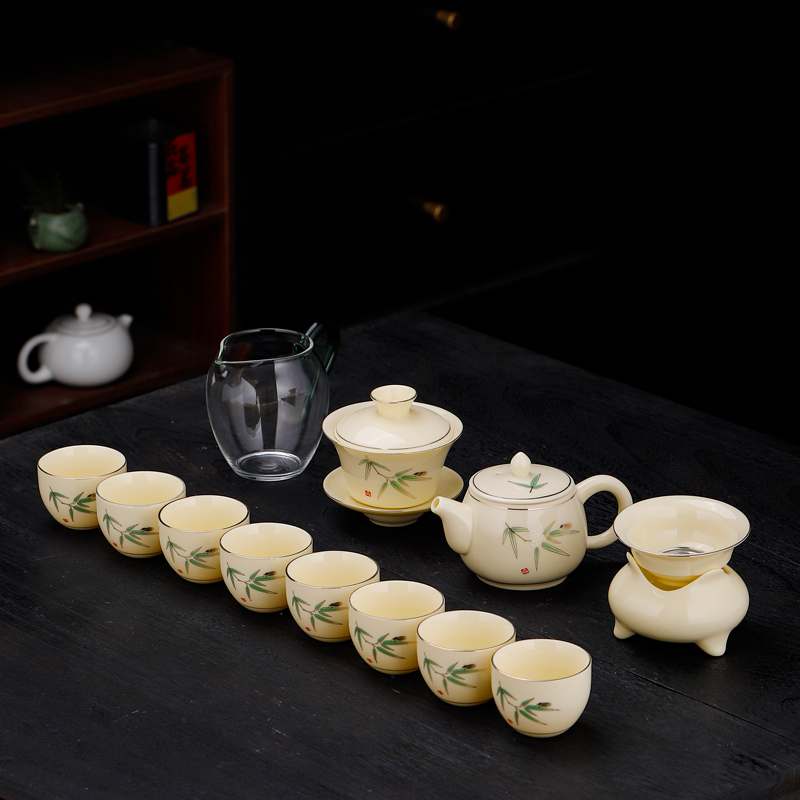 Flat bottom pot lid bowl tea drinking cup 12 pieces flat bottom pot 12 pieces cover bowl 12 pieces of gift box with flat bottom pot 13 pieces of gift box set flat bottom pot tea sea filter combined vertical grain lid bowl vertical textured tea