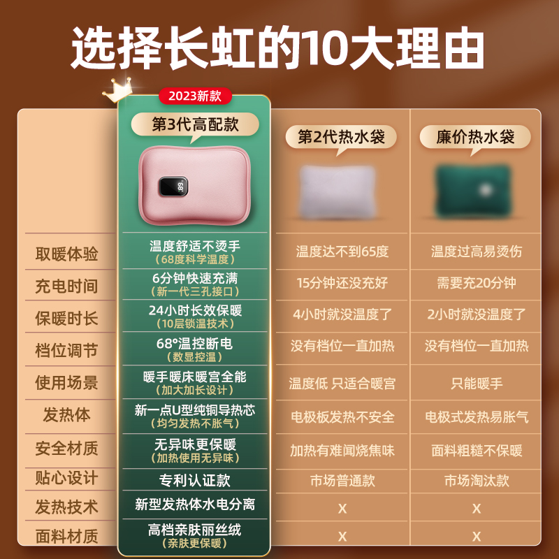 Long Iridescent Electric Hot Water Bag Warm Water Bag Warm Hand Bao Water Injection Rechargeable Warm Baby Explosion Proof Belly Special-Taobao