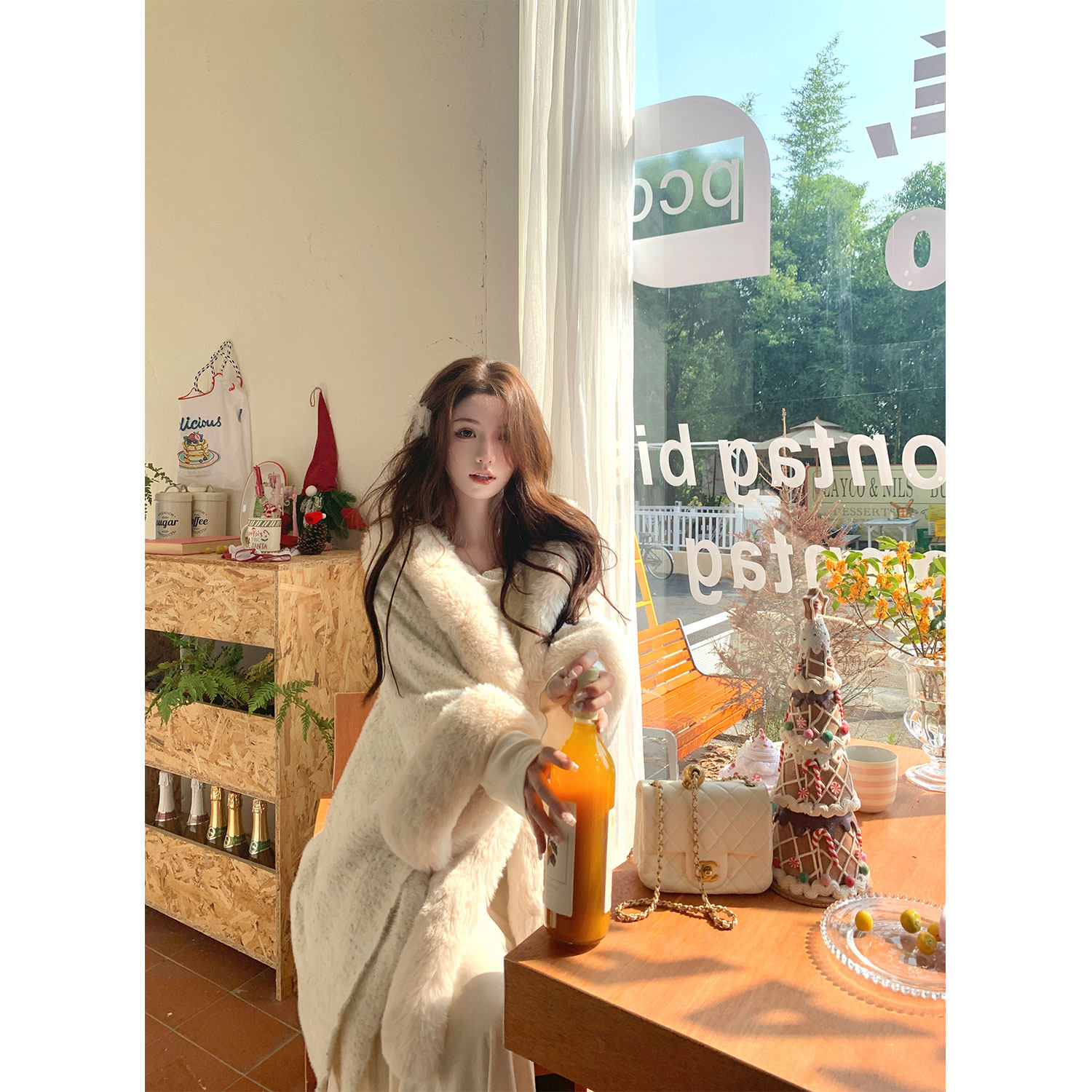 Catyearls cat year with fragrant Picasso ~ shawl rabbit fur collar jacket woman sweet and temperament white cloak coat-Taobao