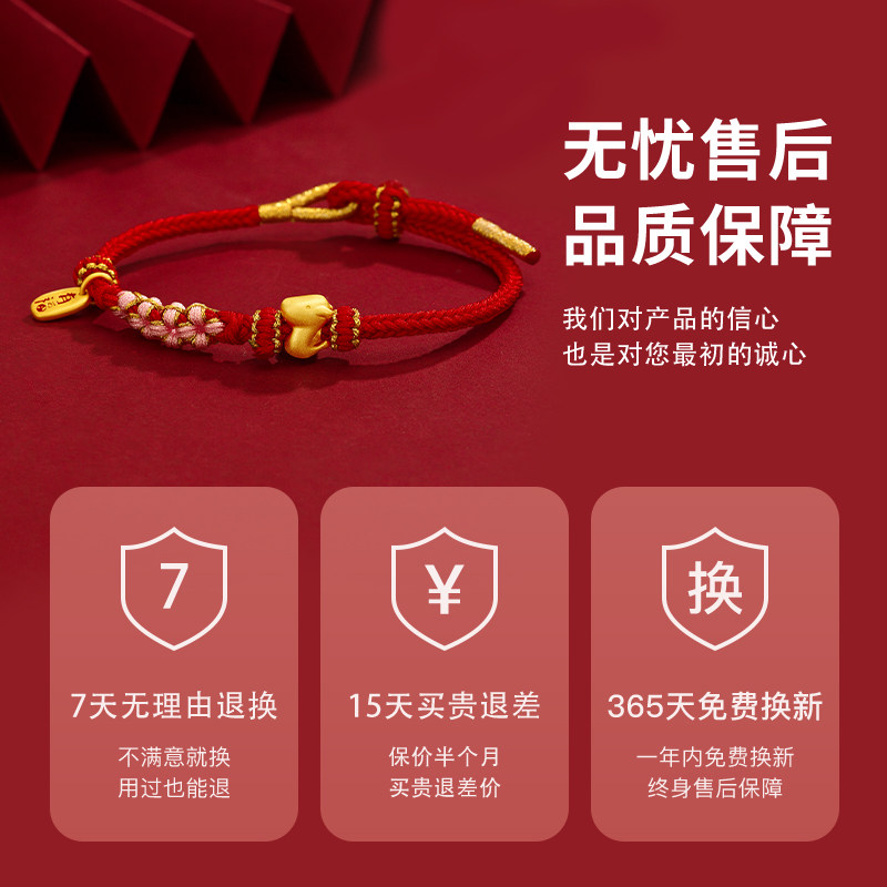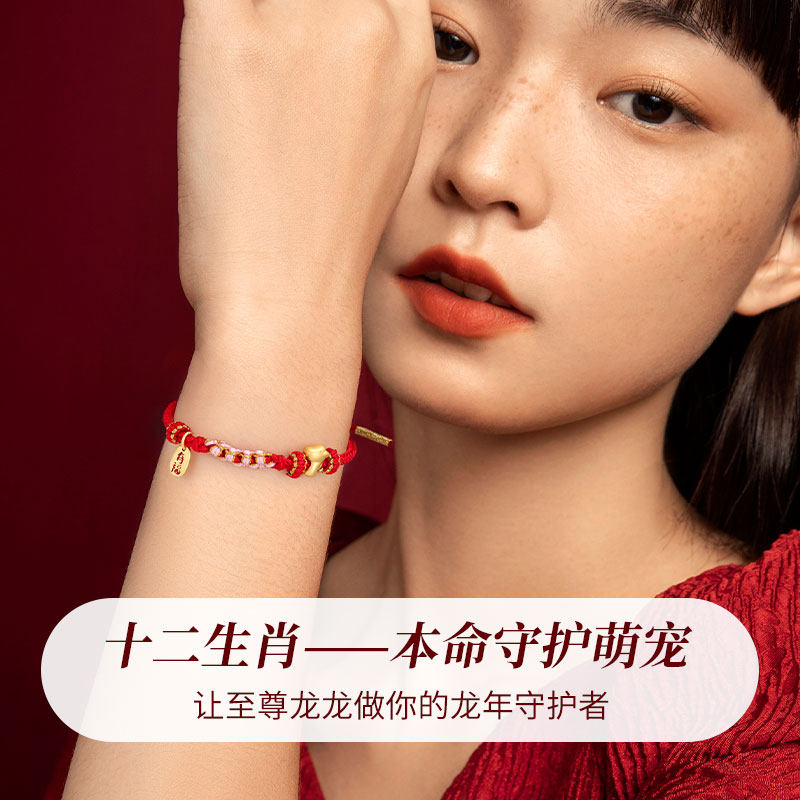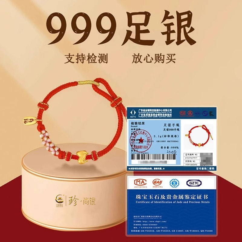 China Gold Treasures Shang Silver Zodiac Zodiac Pure Silver Bracelet Women's Life Year Dragon Year Weaving Red Hand Rope New Year Gift-Taobao