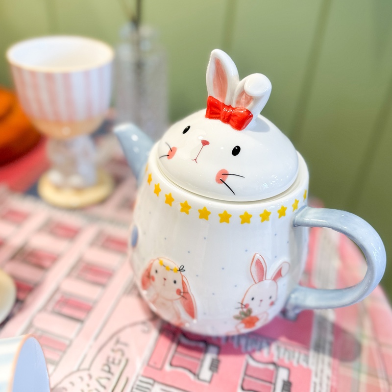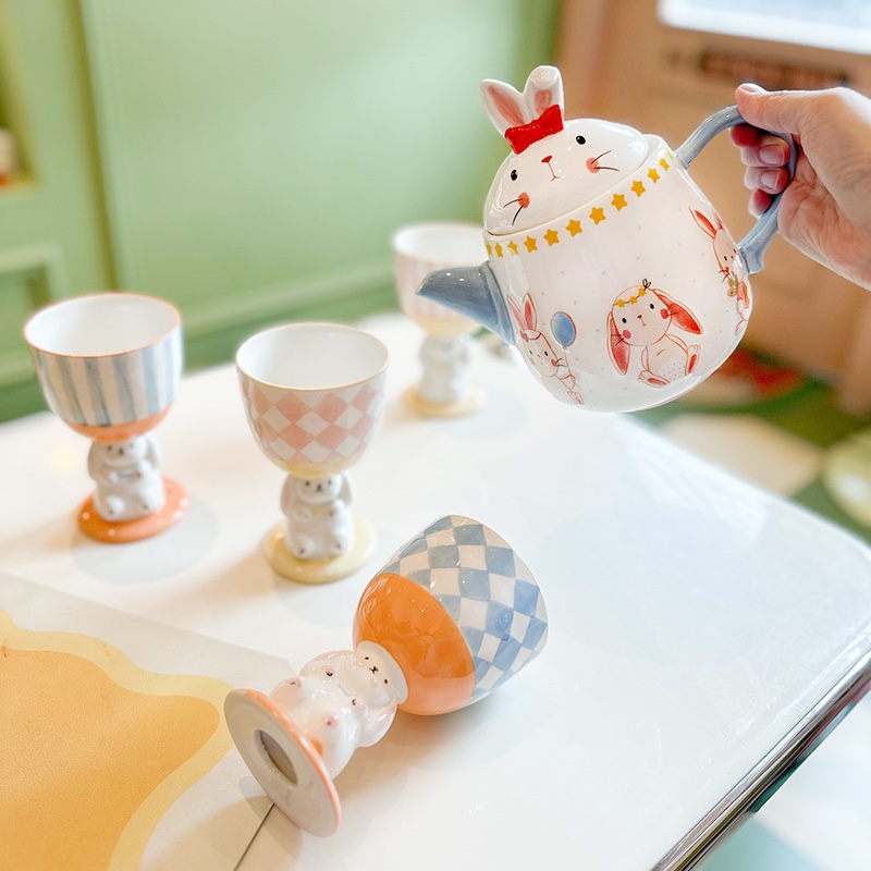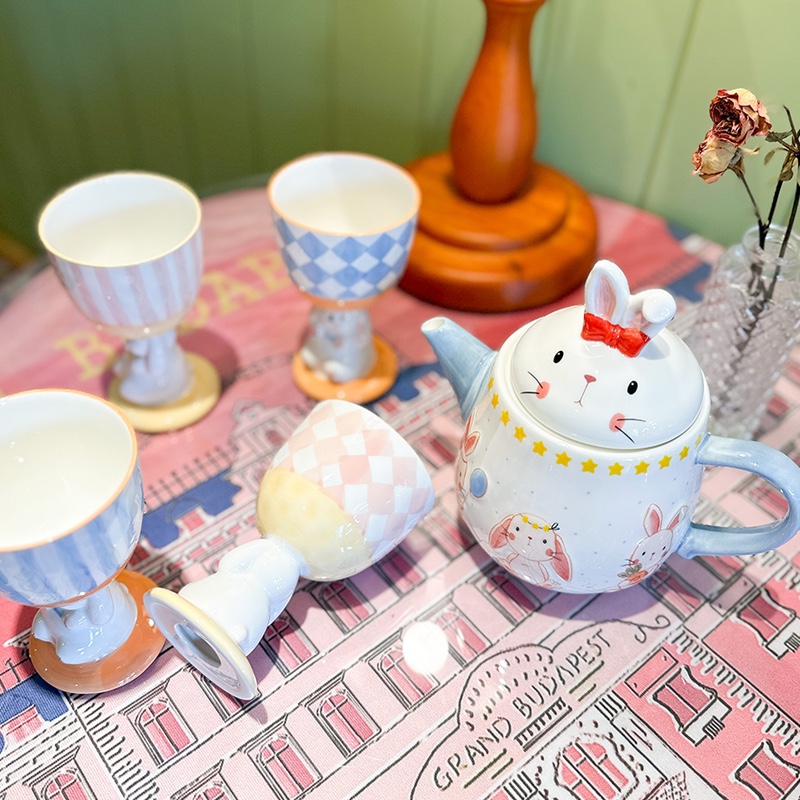 Rabbit teapot rabbit cup ・blue striped rabbit cup ・blue plaid rabbit cup ・pink striped bunny cup pink plaid rabbit cup ・green striped rabbit cup ・green plaid rabbit tea set three sets ・