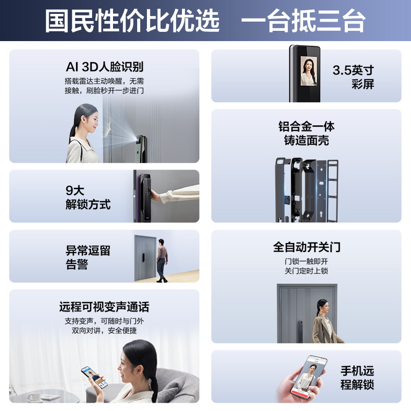 Haier home fully automatic 3D face recognition smart door lock fingerprint lock visual doorbell monitor electronic code lock-Taobao