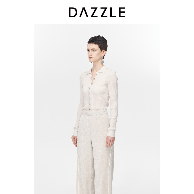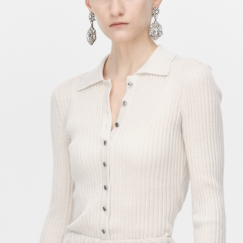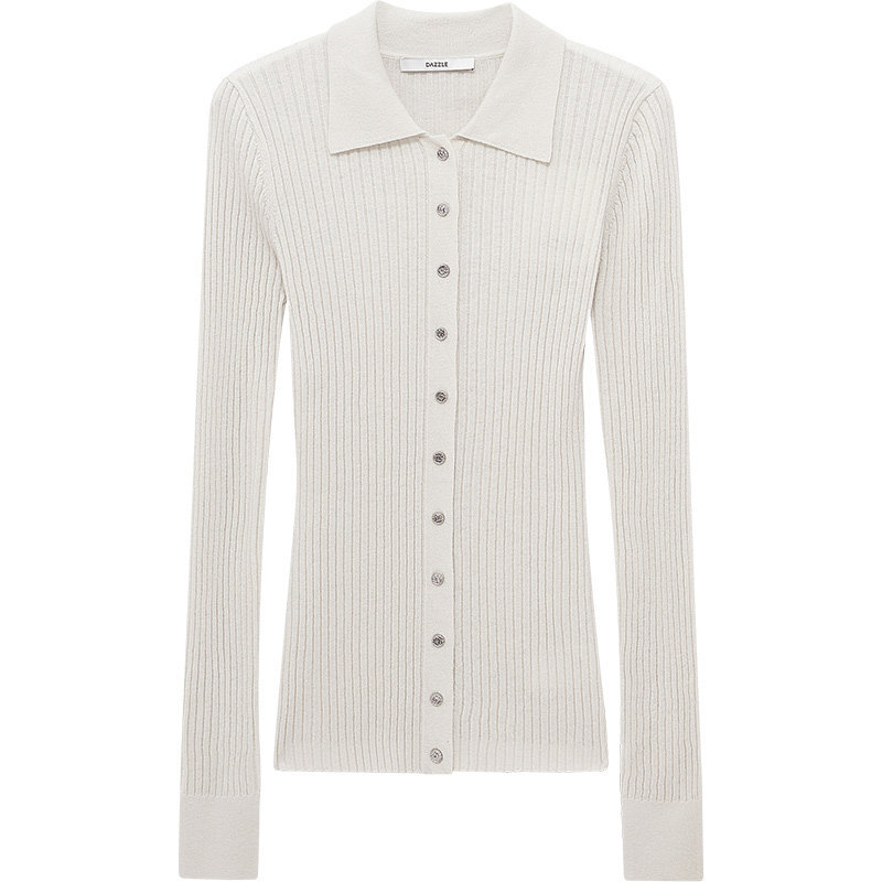 DAZZLE ground vegan white body knit cardigan 2023 Winter new turn collar knitted cardigan for women-Taobao