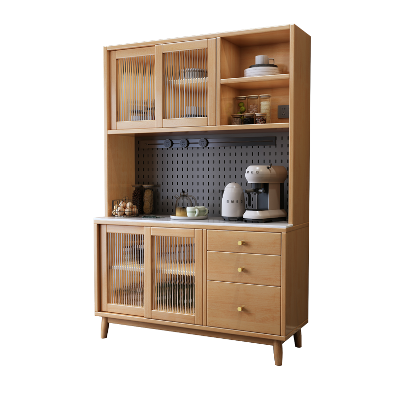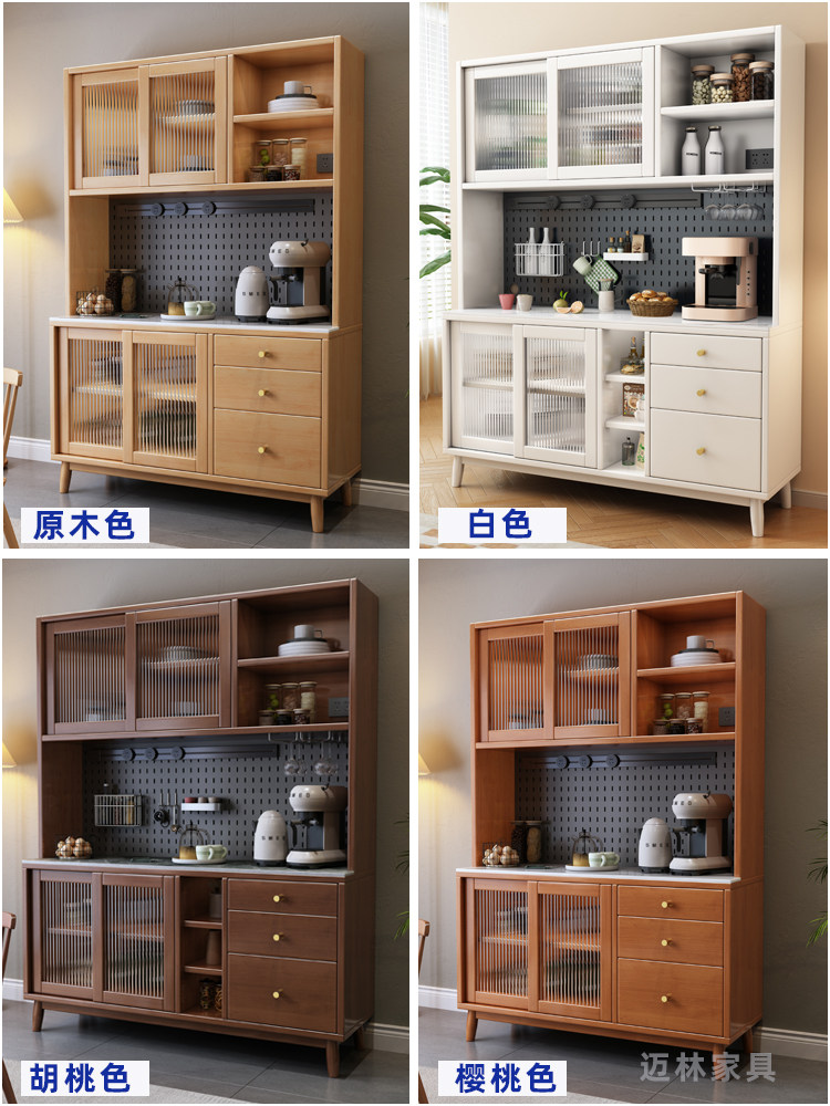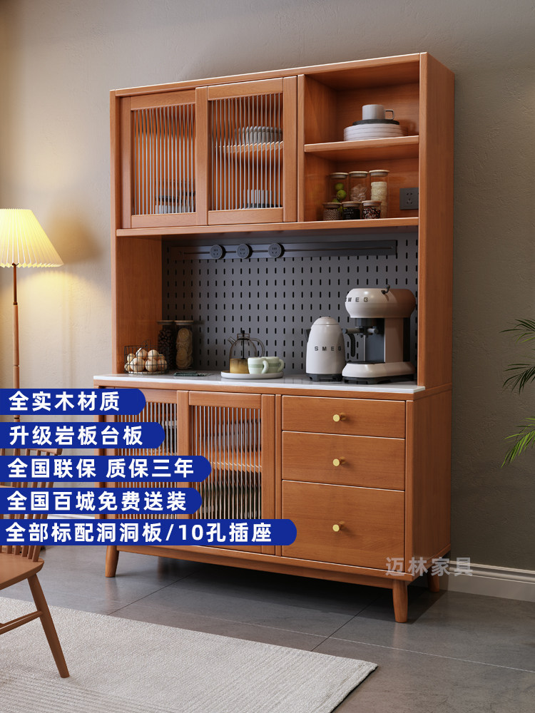 Full solid wood dining side cabinet leaning against wall integrated living room modern Nordic tea water cabinet kitchen high cabinet home rock plate lockers-Taobao