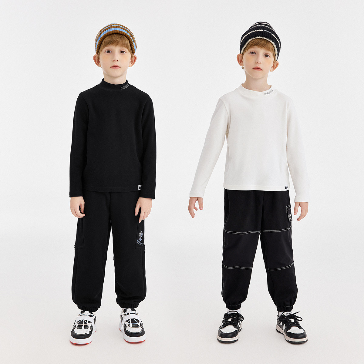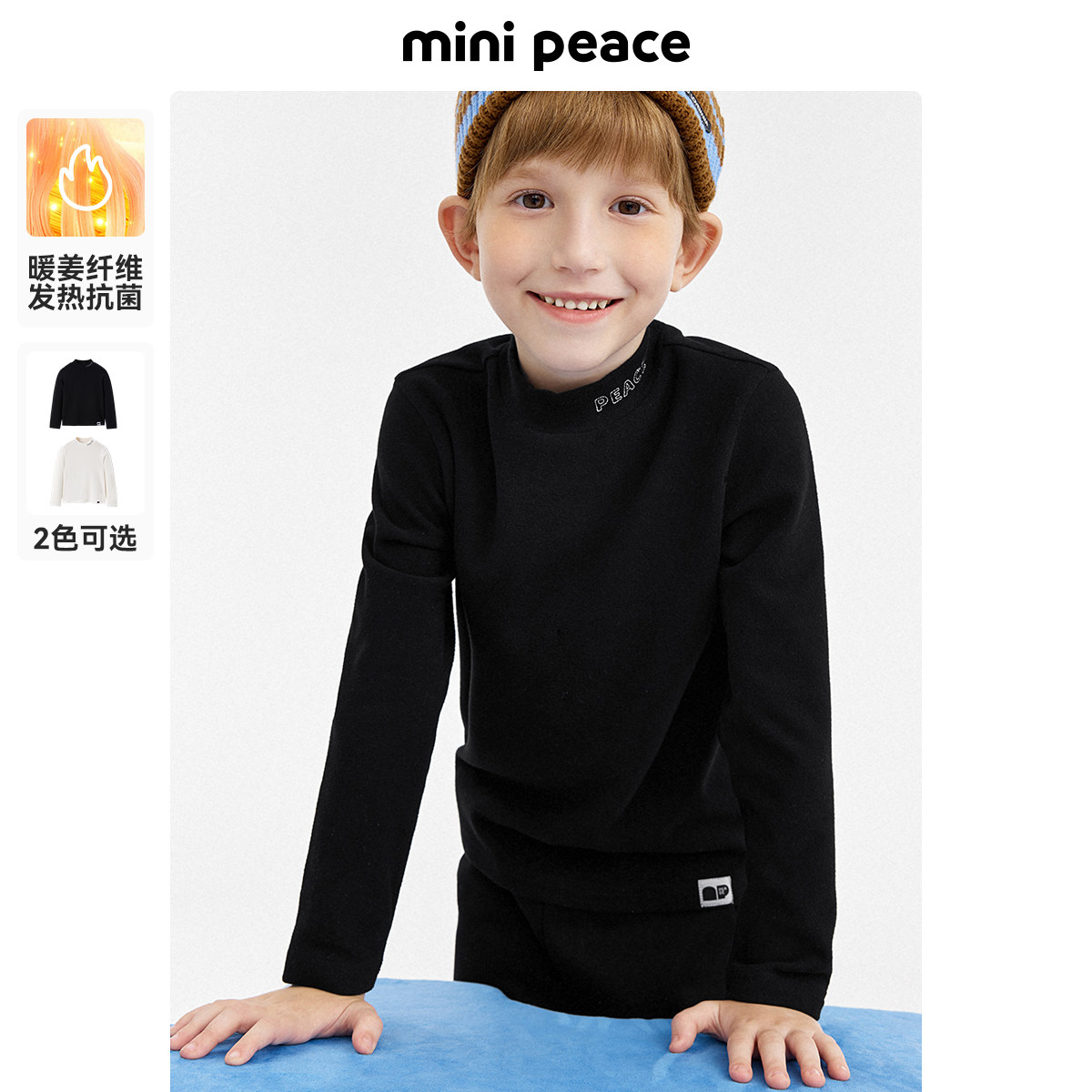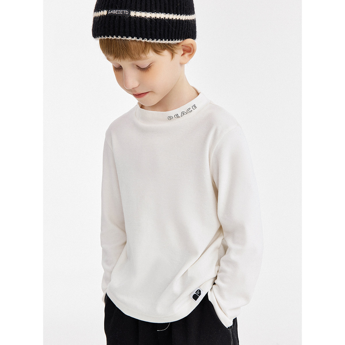 (Warm Ginger antibacterial) Minipeace Taiping bird boy clothing boy pure black and white jersey undershirt child long sleeve T-shirt-Taobao