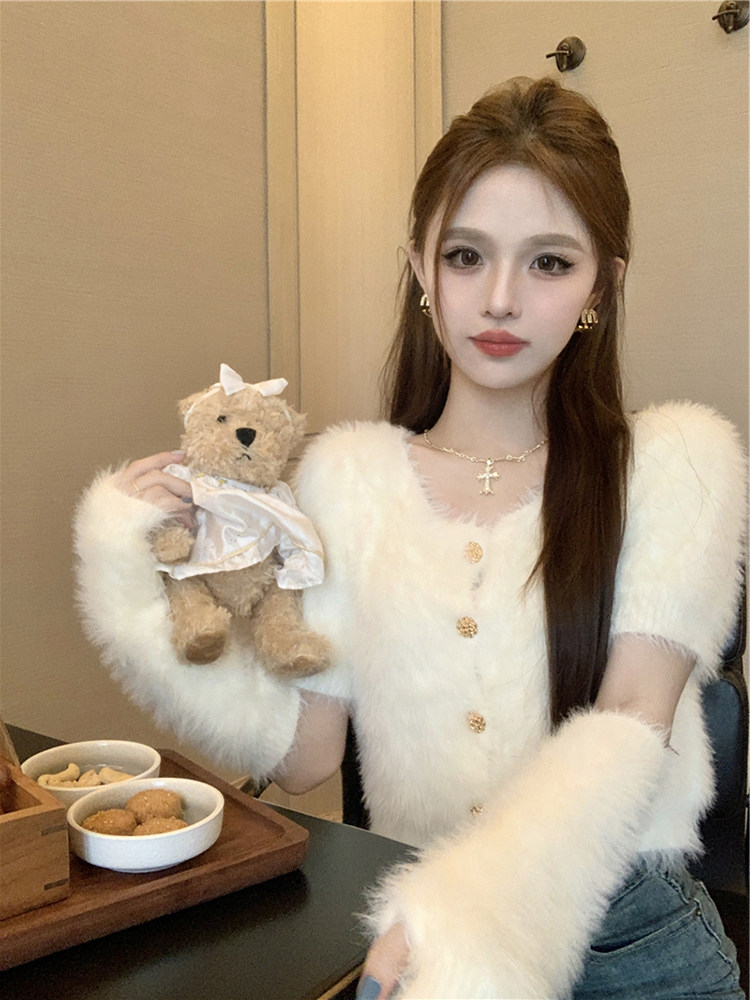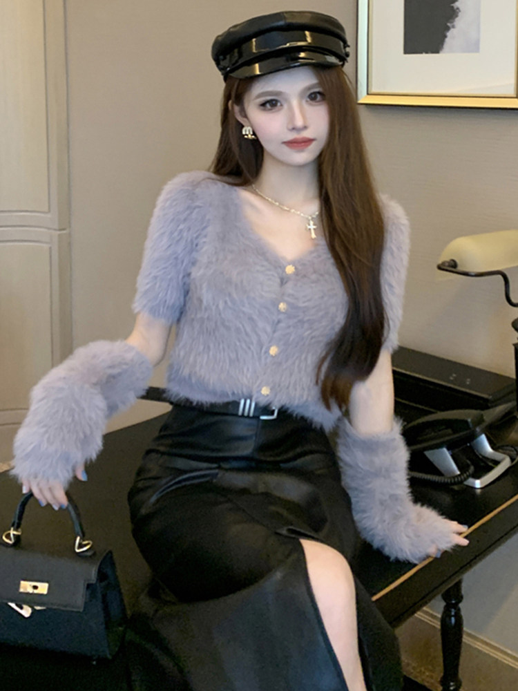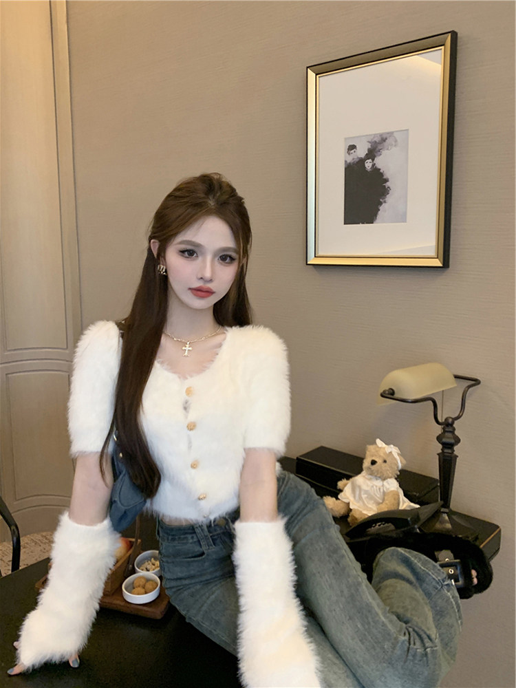 Pure Desire Wind and Spicy Sexy Plush Suede Knit Cardigan Soft Glutinous Short Sleeves Sweater Woman (spot) -Taobao