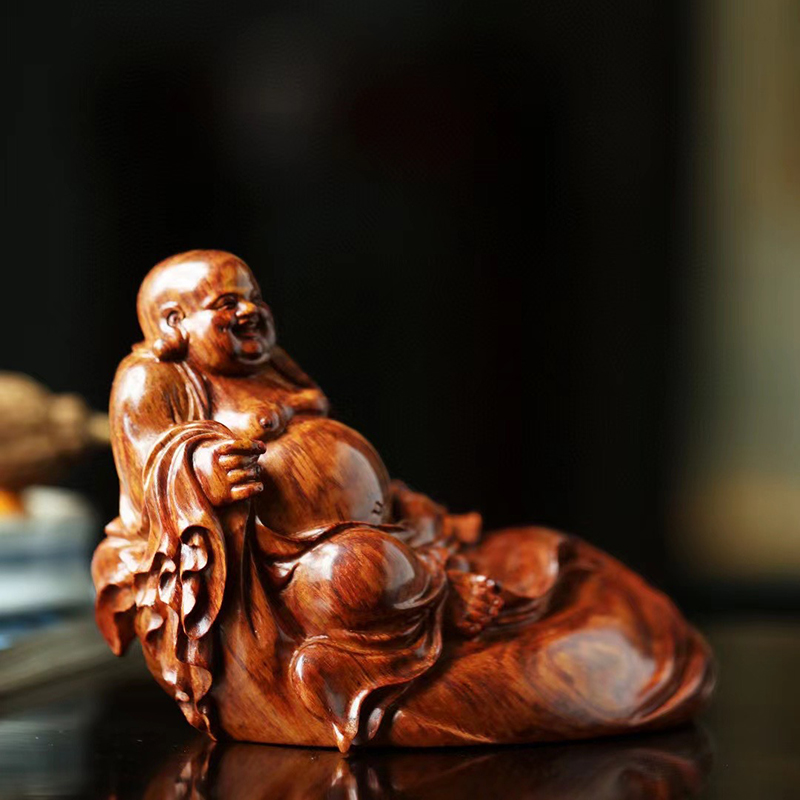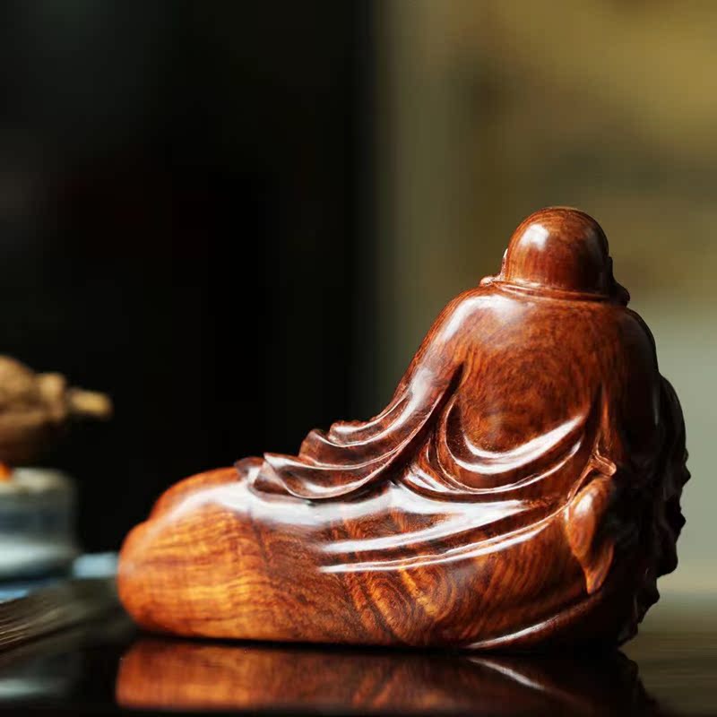 Hainan Huanghuali cloth bag Maitreya hand-held table water ripples hand-carved atmospheric creative crafts