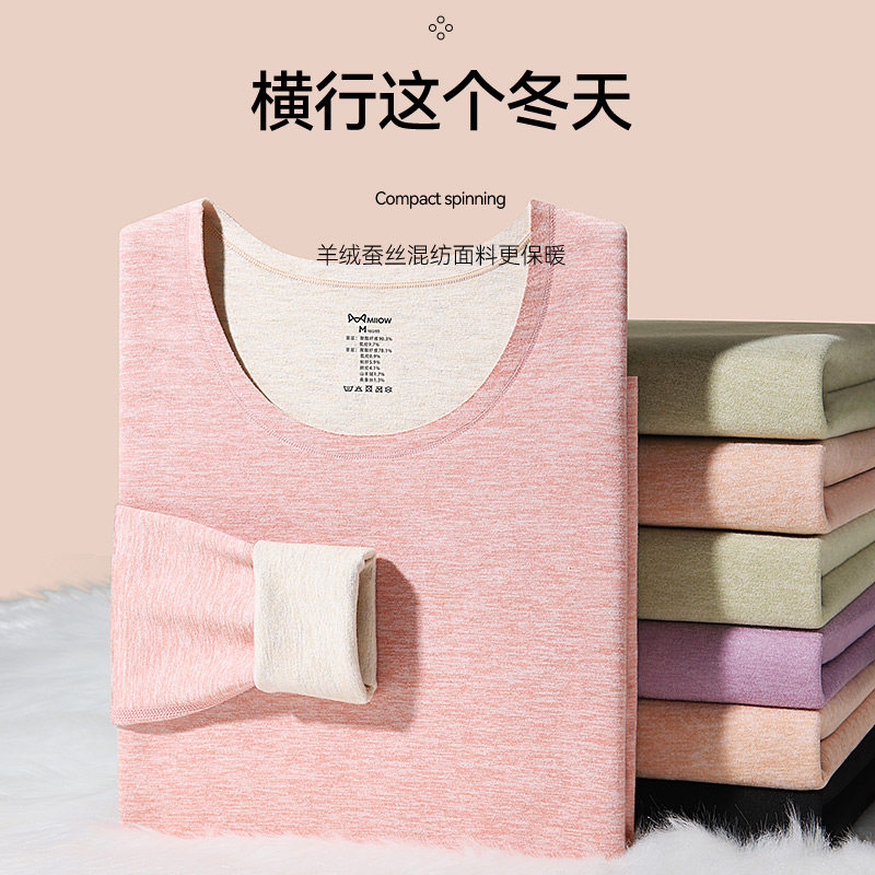 Cat person keeping warm underwear lady Develvet fever No mark autumn clothes Autumn pants suit beating bottom plus velvet silk cashmere winter-Taobao
