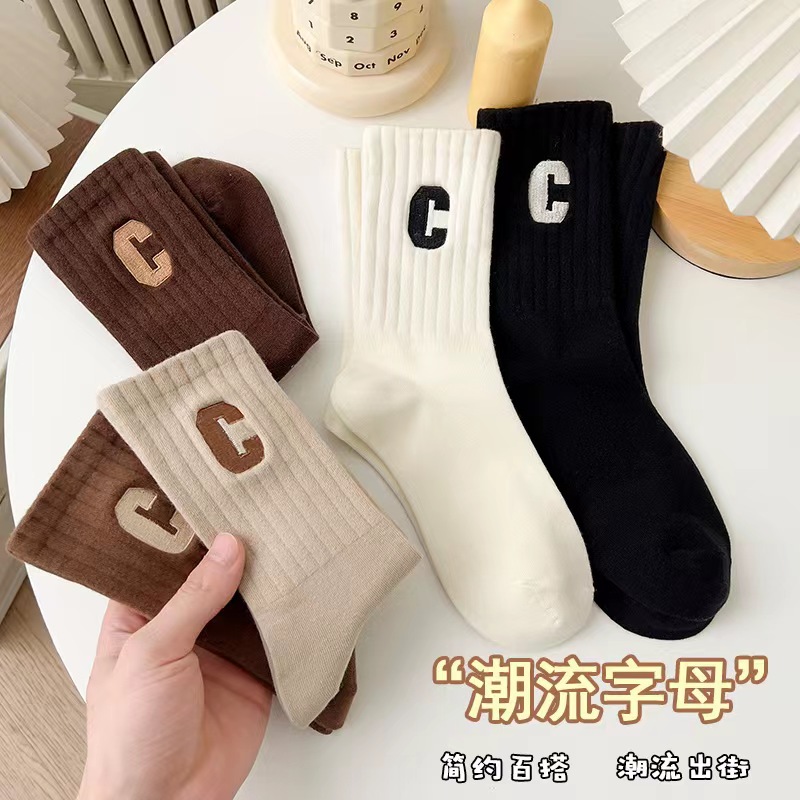 10 only stocking children's children ins Chains 100 hitch Korean version sports wind outside wearing the autumn middle cylinder high face value Mori's silo socks-Taobao