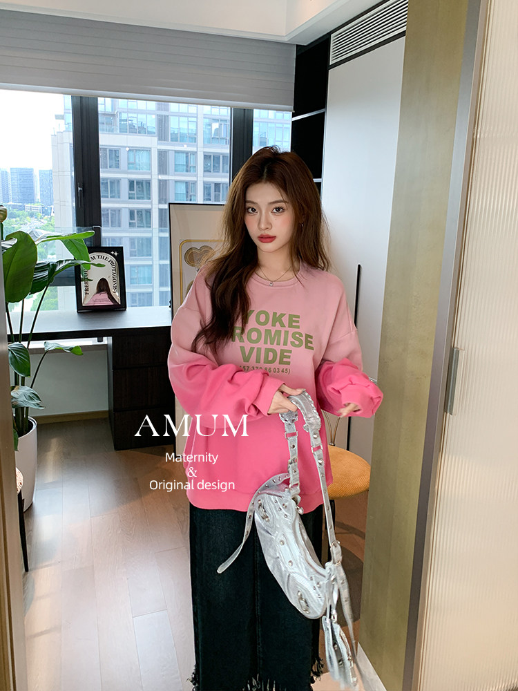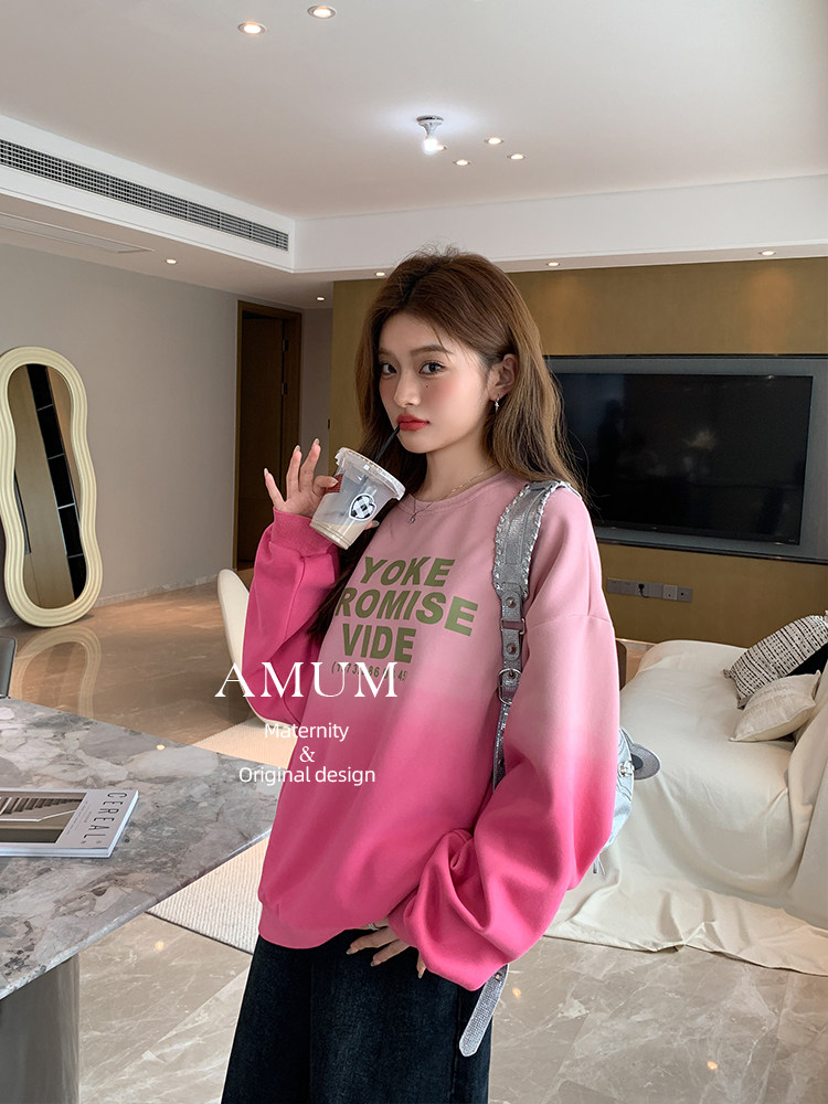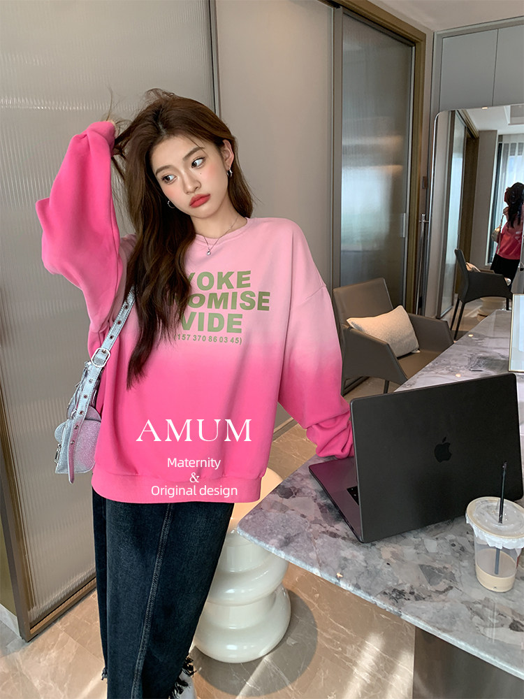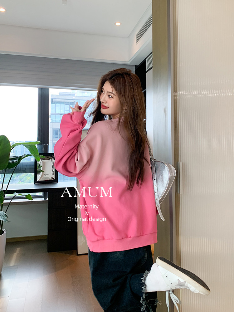 AAM M U M Pregnancy Women Dress CAPTURE SLACK SENSATIONS ~ GRADIENT FIRE DRAGON FRUIT PINK COLOR DISPLAY WHITE LONG SLEEVE SWEATSHIRT LOOSE JACKET-Taobao