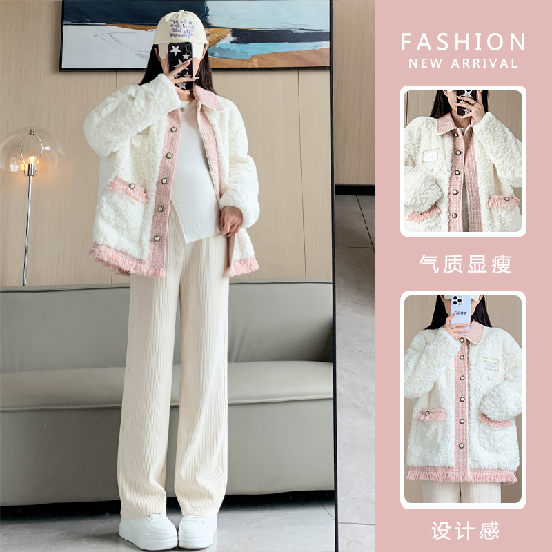 Pregnant women's autumn clothing suit 2023 new autumn and winter outside wearing warm lamb fur coat fashion two sets of winter clothing blouses-Taobao