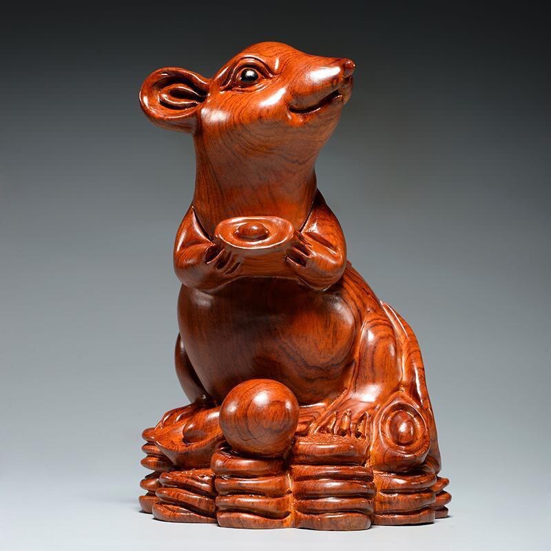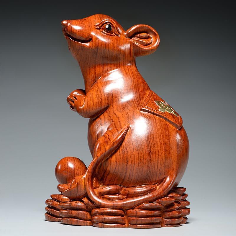 Flowers Pear Wood Engraving Mouse Pendulum Pieces Zodiac Zodiac Woodrat Home Office Decoration Red Wood Handicraft New Residence Gifts-Taobao
