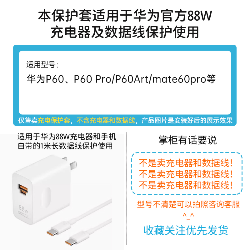 Applicable Huawei 88w electrical protective sheath P60pro matex3 mobile phone quick-charging head data line sleeve Huawei mate60pro mobile phone shell silicone gel protective shell anti-break winding line new