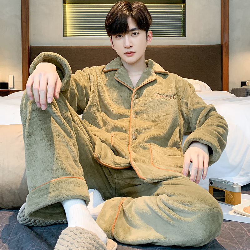 Coral suede pyjamas for men's autumn and winter style winter thickened with suede warm flannel teen home Suit Men Suit-Taobao