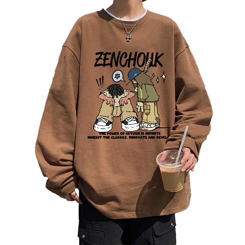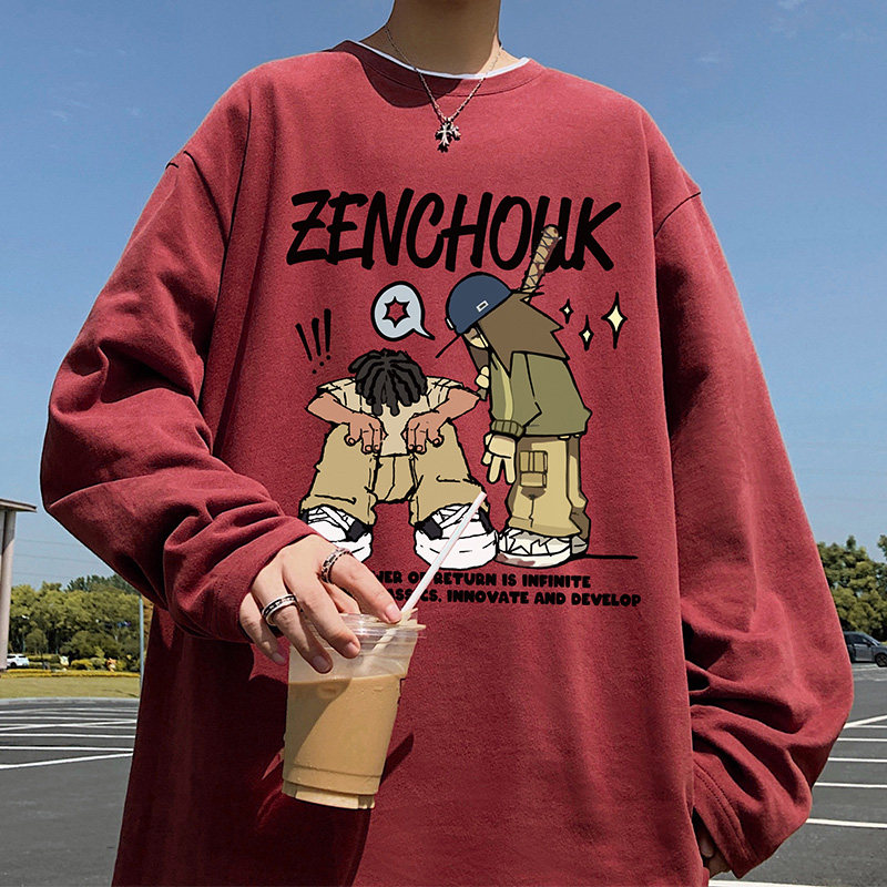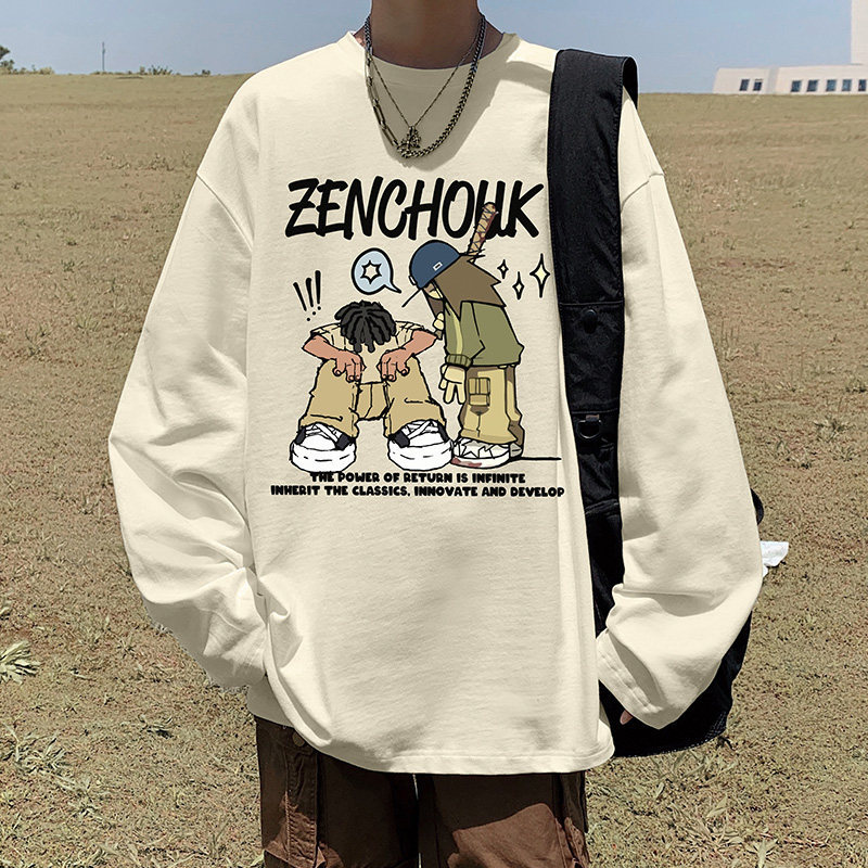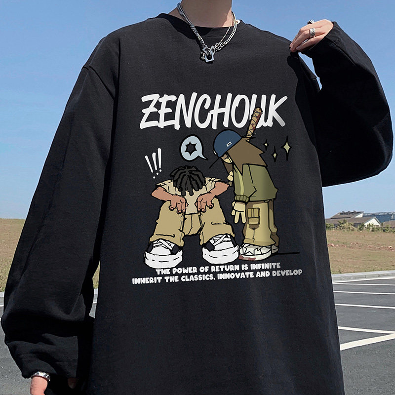 Pure cotton long sleeve T-shirt for men's autumn and winter 2023 new American tide cards for the bottom-shirt round collar big code sweatshirt-Taobao