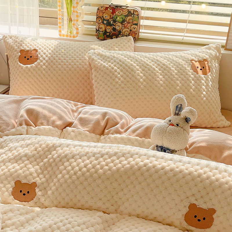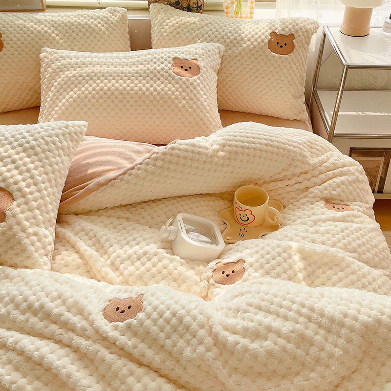 Class A Bean Suede Winter Bed Four Pieces Thickened Milk Coral Suede Bed Pint Children Flannel Quilt Cover Sheet-Taobao