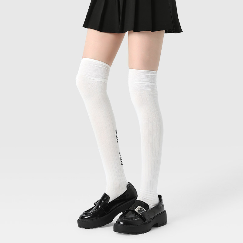 Socks children fall white calf socks net red overfire letters over knee socks autumn winter style black and knee-length silo socks cotton-Taobao