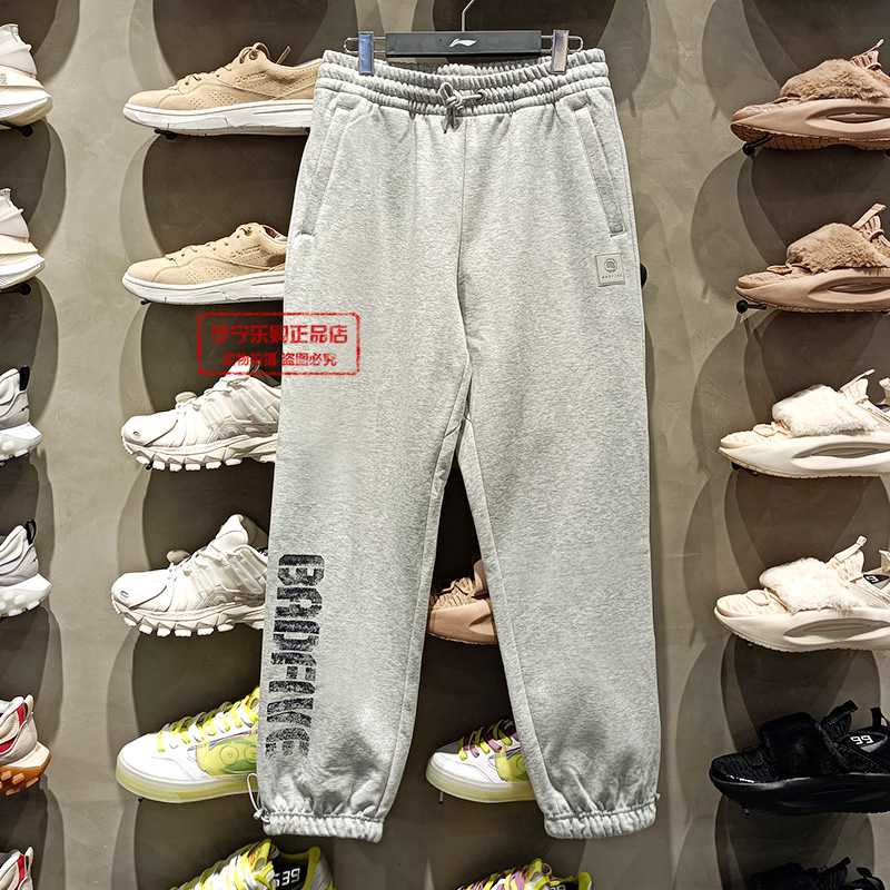 Li Ning Sports Pants Men 2023 Winter New Pants Anti-wood-series Loose Plus Suede Warm Up Clothing AKLT879-Taobao