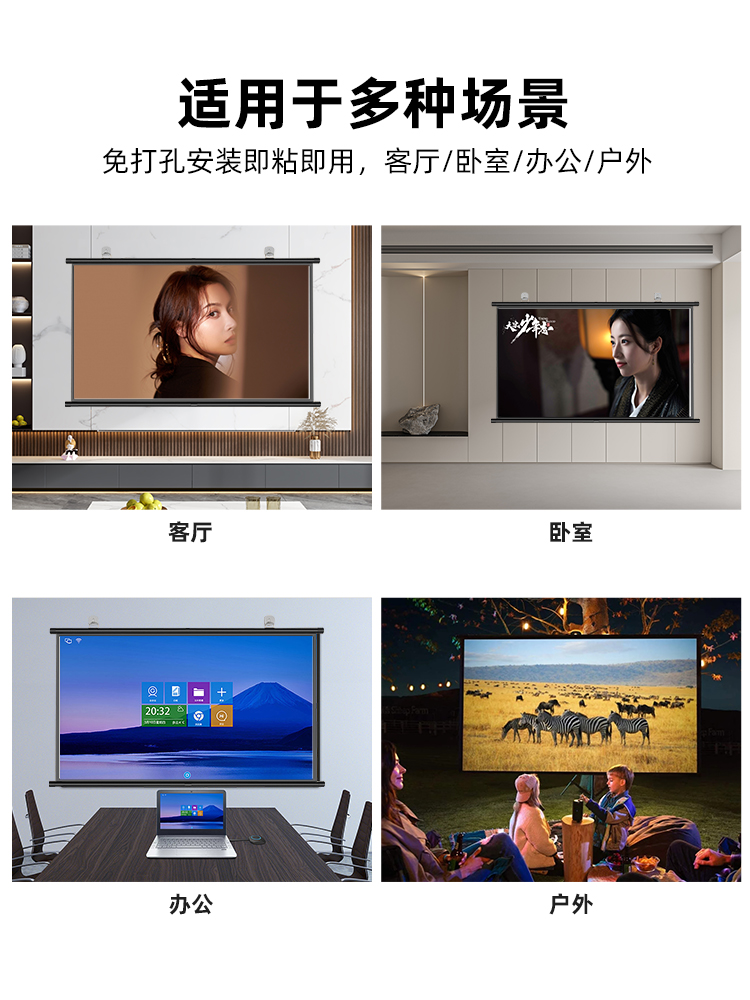 (Suning Recommended) Extreme Rice Nuts When Bay 4K Fiber Anti-Light Curtain Cloth Daytime Straight To Home Wall Hook-Free Simple 120 Inch 100 Inch Projector High-definition Portable Screen 4K1876 -Ta