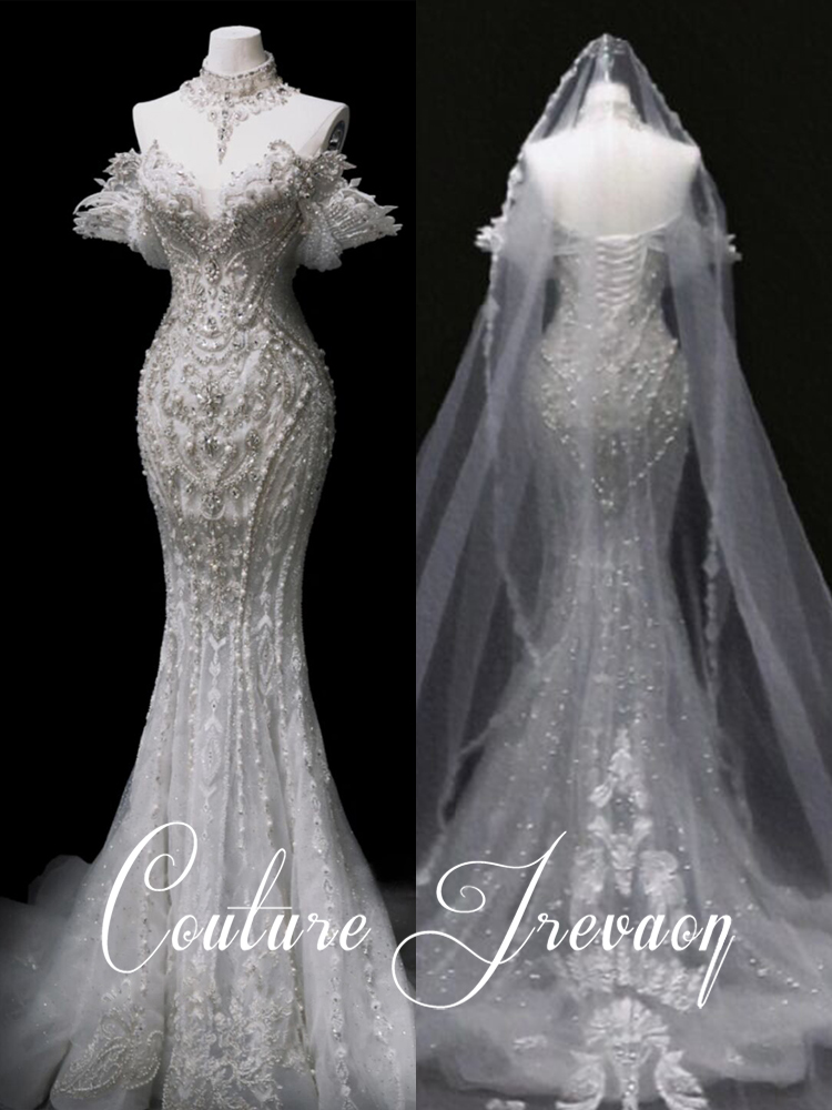 2023 new face-style fish tail sexy straight shoulder main wedding dress bridal light wedding dresses high-end gown dress outskirt dresses-Taobao