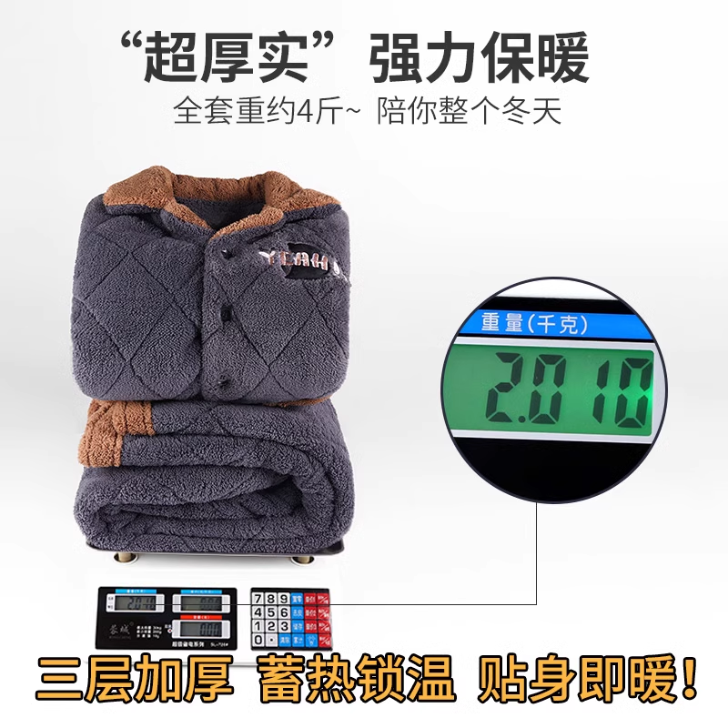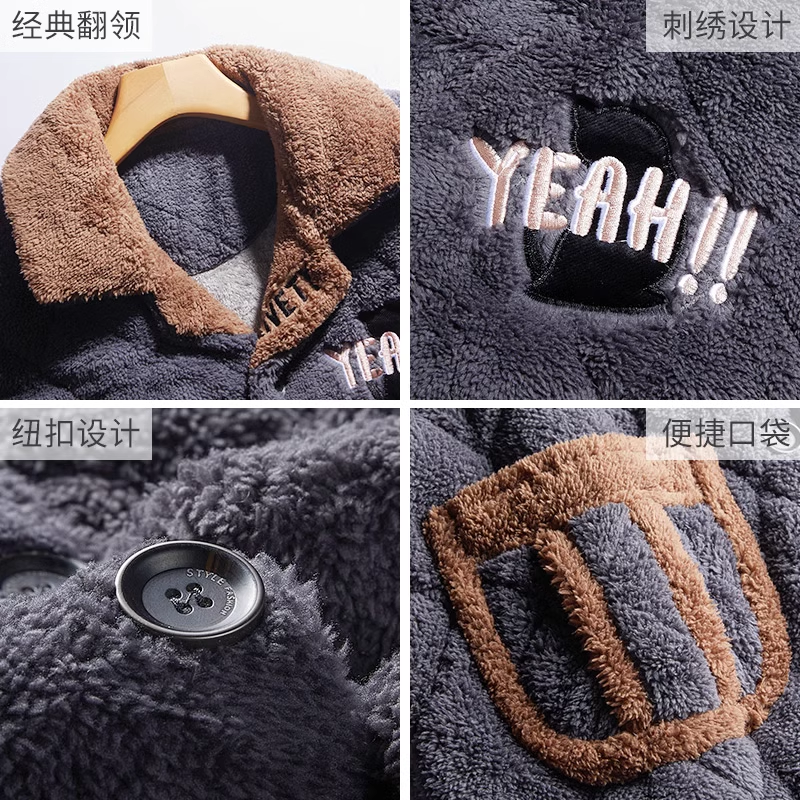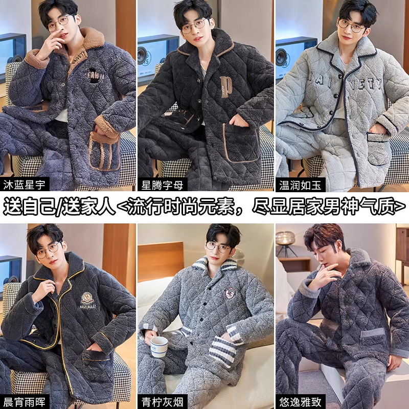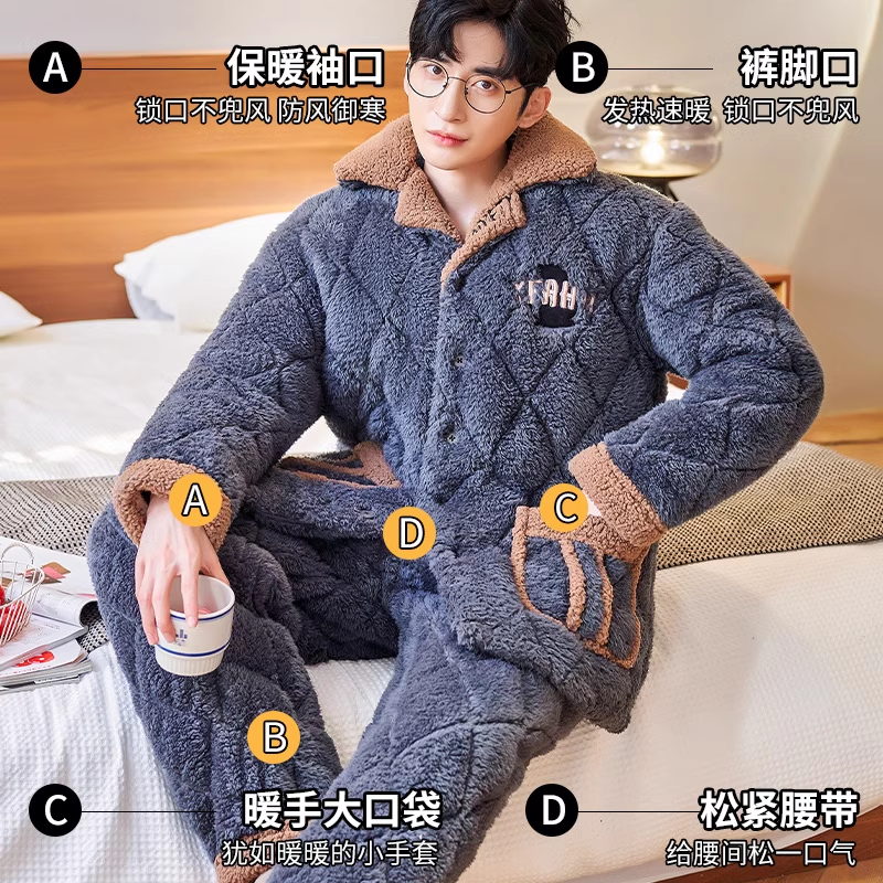 2023 New winter men's sleepwear winter style thickened and gapped coral suede three-layer clip cotton autumn and winter day home clothes-Taobao