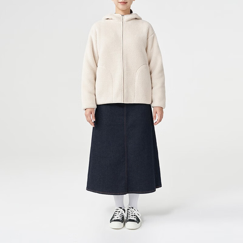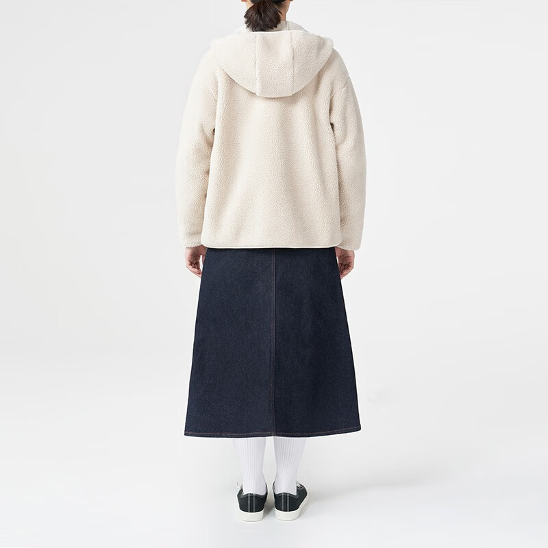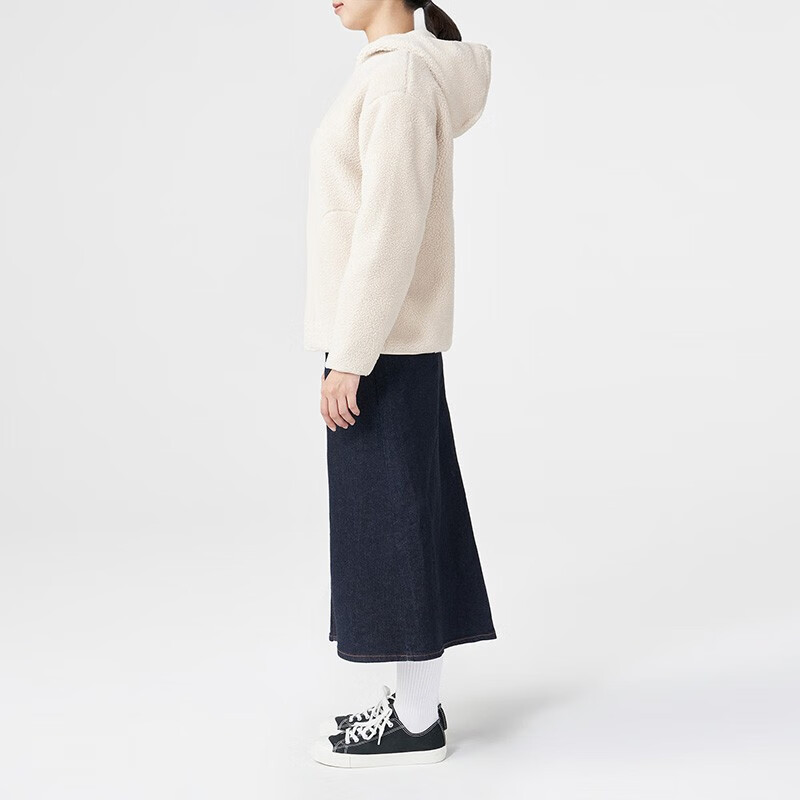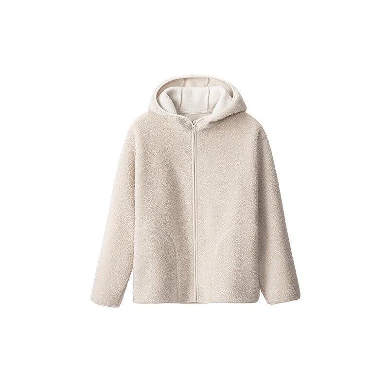 No print good products MUJI Women's style long fur grip suede zipped with hoodie short style jacket autumn and winter warmth-Taobao