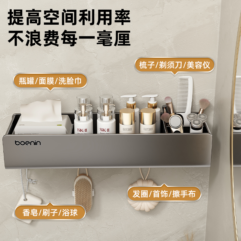 Add High Toilet Shelf Free to punch bathroom toilet Toilet Wash Terrace Bathroom wall Contained Shelf Wall-mounted-Taobao