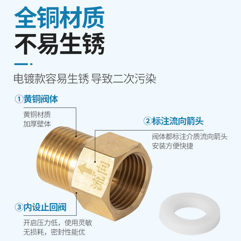 One-way check valve full copper toilet 4 minutes anti-water washroom water-stop valve Anti-water back clock backstop valve-Taobao