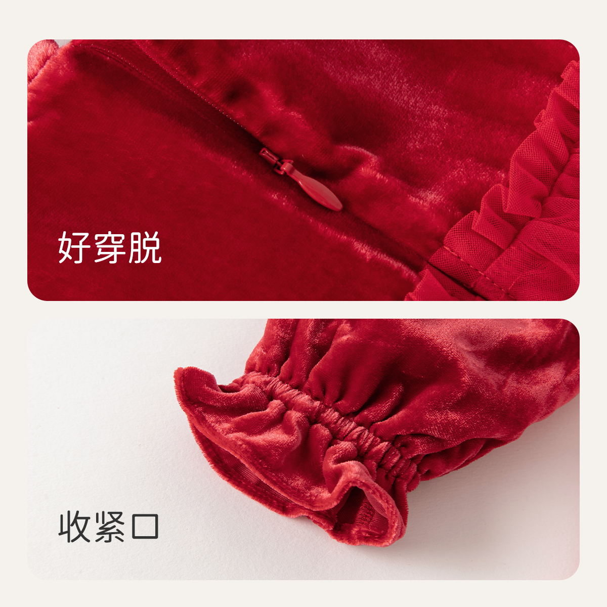Davibella Girls New Year's State Winds dress 2024 new winter dress children Cavet dresses red princess dress-Taobao