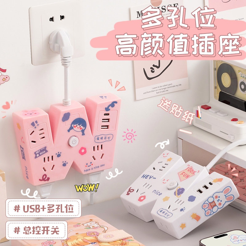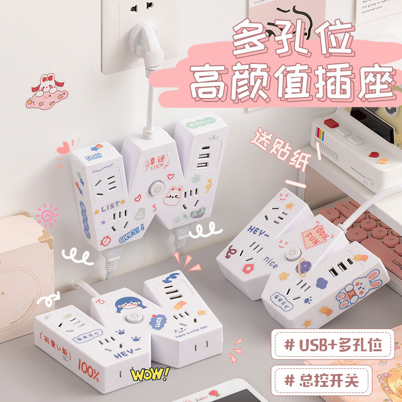 Cartoon Socket Multifunction with USB plug-in Plugboard Student Dormitory With Wire Porous Patch Board Converter 1322-Taobao