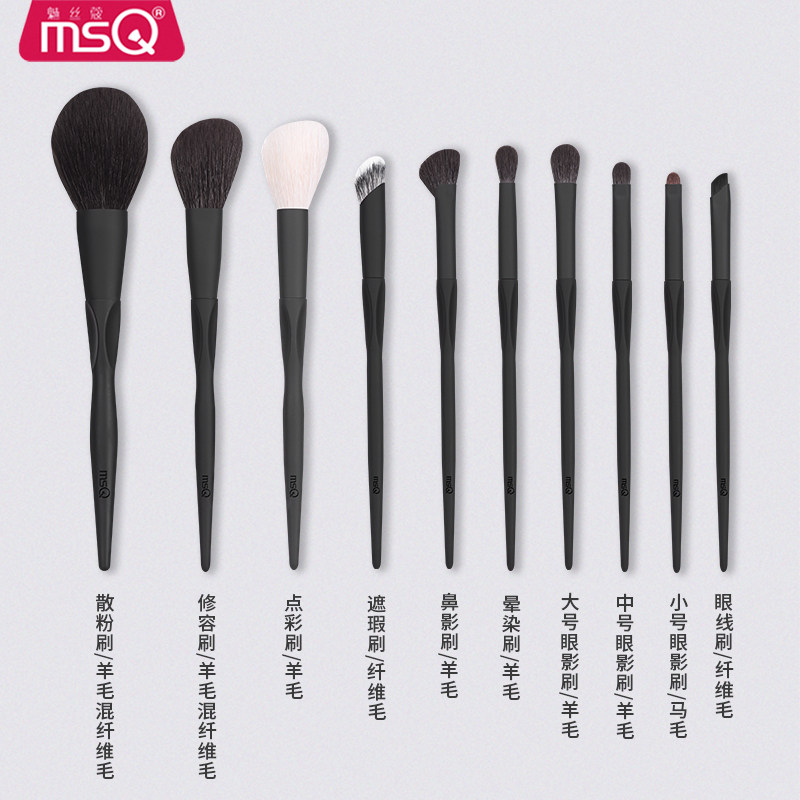 MSQ Phantom 10 black glazed makeup brush suit complete with professional animal hair powder brushed eye shadow brush tool-Taobao