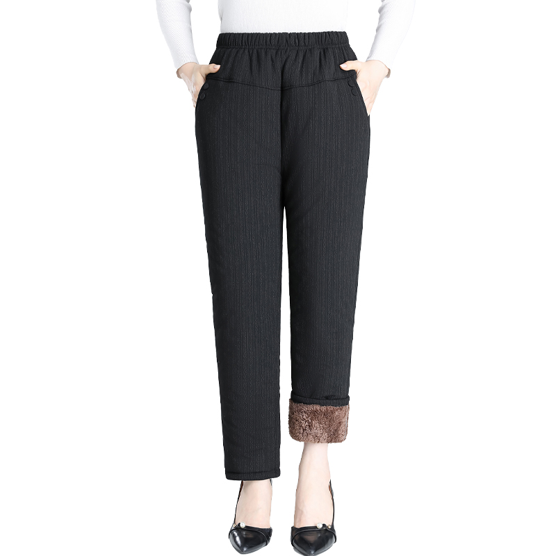 Middle Aged Woman Winter Thickened Cotton Pants Mom High Waist Plus Suede Pants Outside Wearing Grandma Loose Warm Pants Embroidered-Taobao