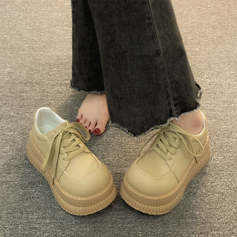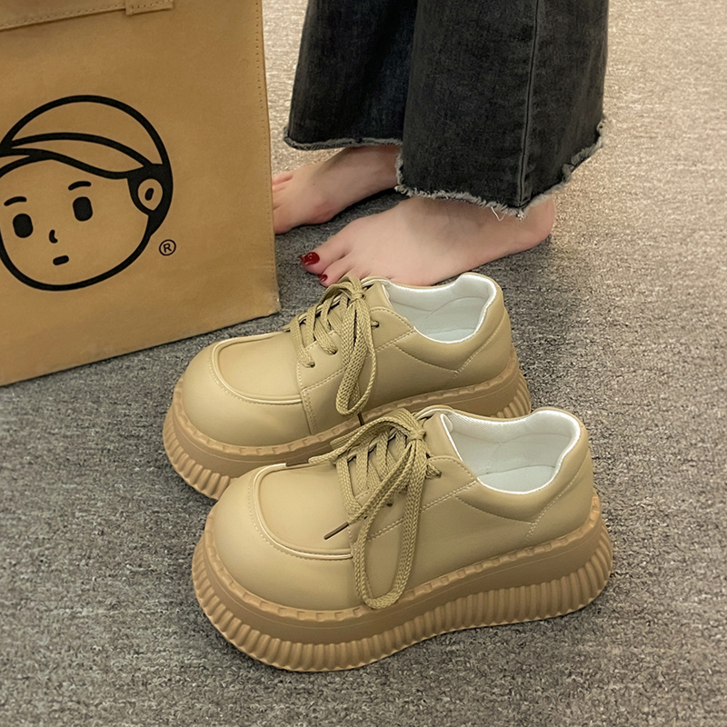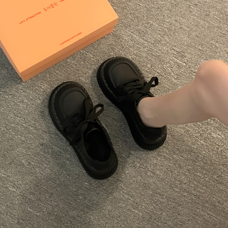 Inlen Wind Small Leather Shoes New 2023 Burst Woman Pine Cakes Thick Bottom Lefu Shoes Autumn Winter Black Sports Casual Shoes-Taobao