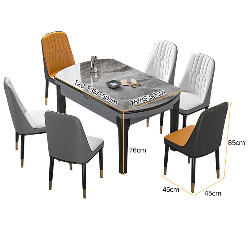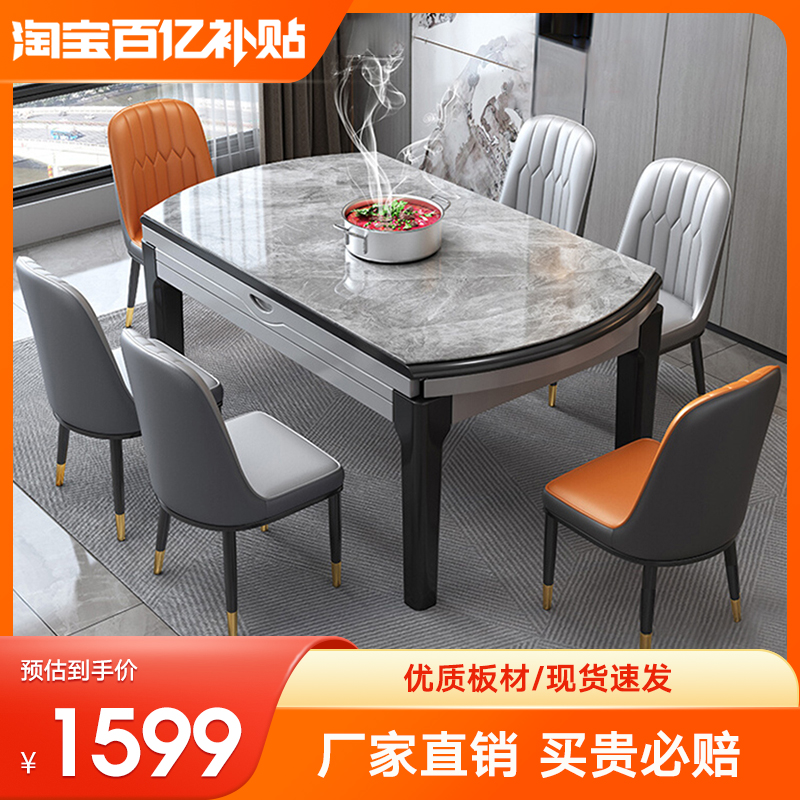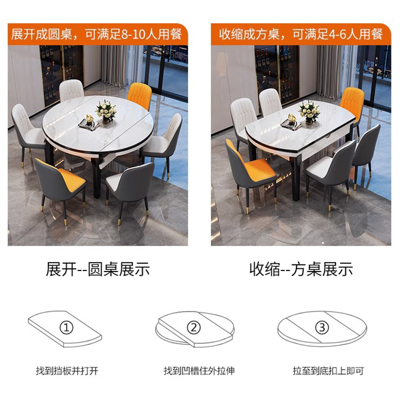 Nay high solid wood rock plate dining table and chairs telescopic folding modern minimalist home variable round table dining table with 6 chairs-Taobao