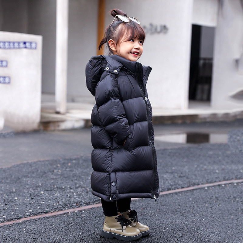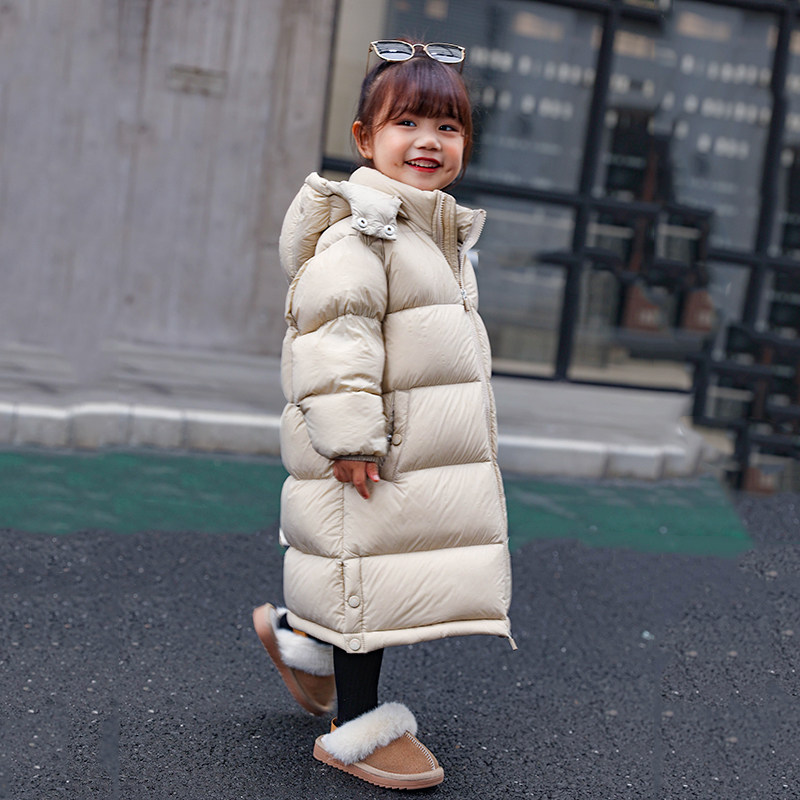 Male and female child down jacket with long section thickened long style over knee 2023 new foreign air CUHK Children's baby jacket winter-Taobao