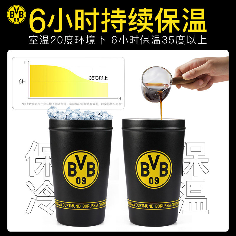 Borussia Dortmund Team Emblem Letter Coffee Cup Portable Insulation Cup Metal Texture Advanced Sensation Water Cup-Taobao