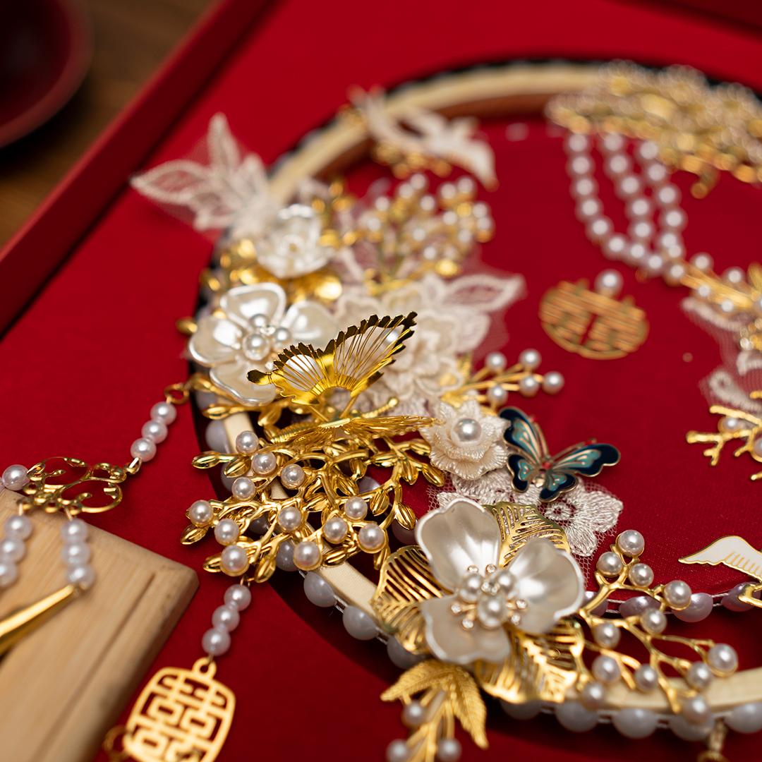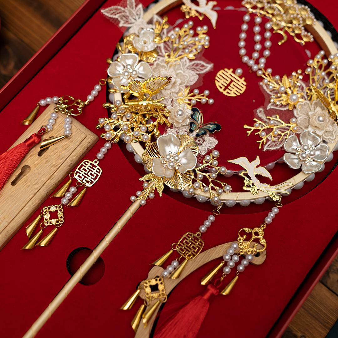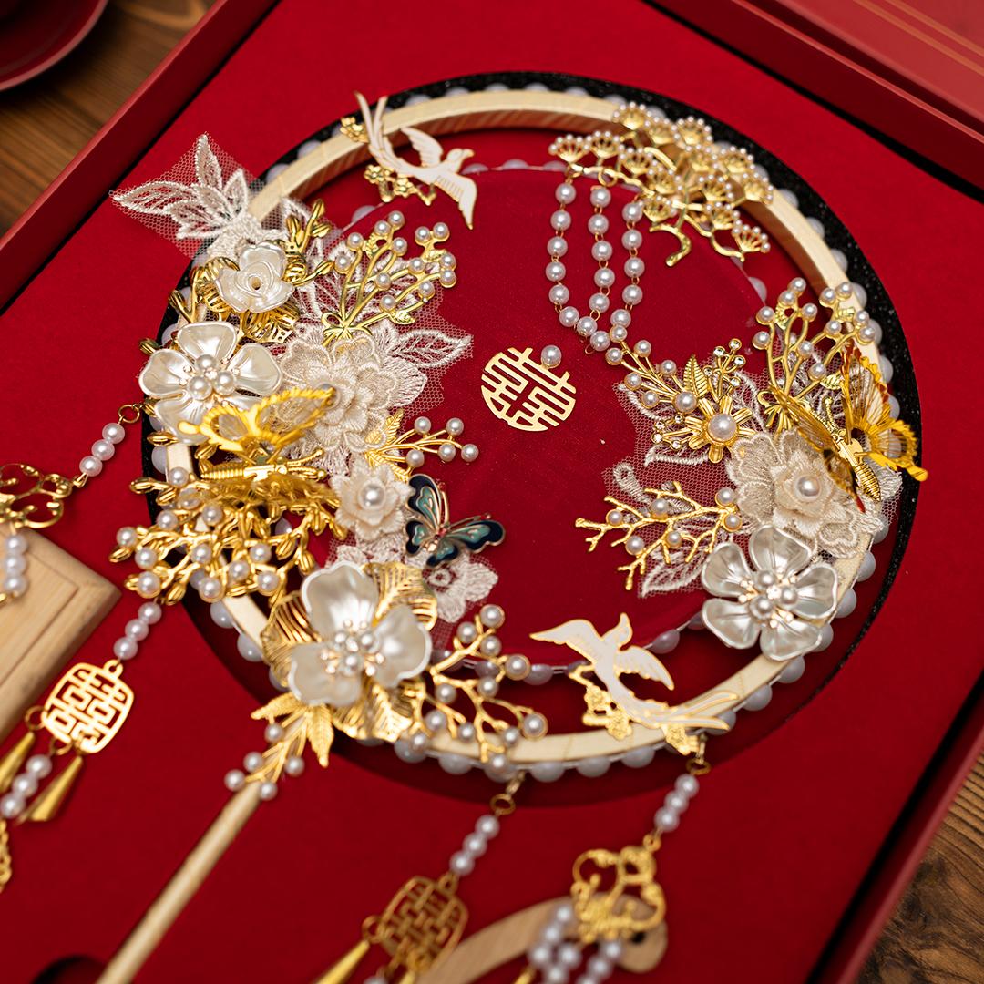 Bride Group Fan Wedding Show and Fan Red Bifacial Finished Diy material Package Festive Fan Reworked Wedding Fan-Taobao