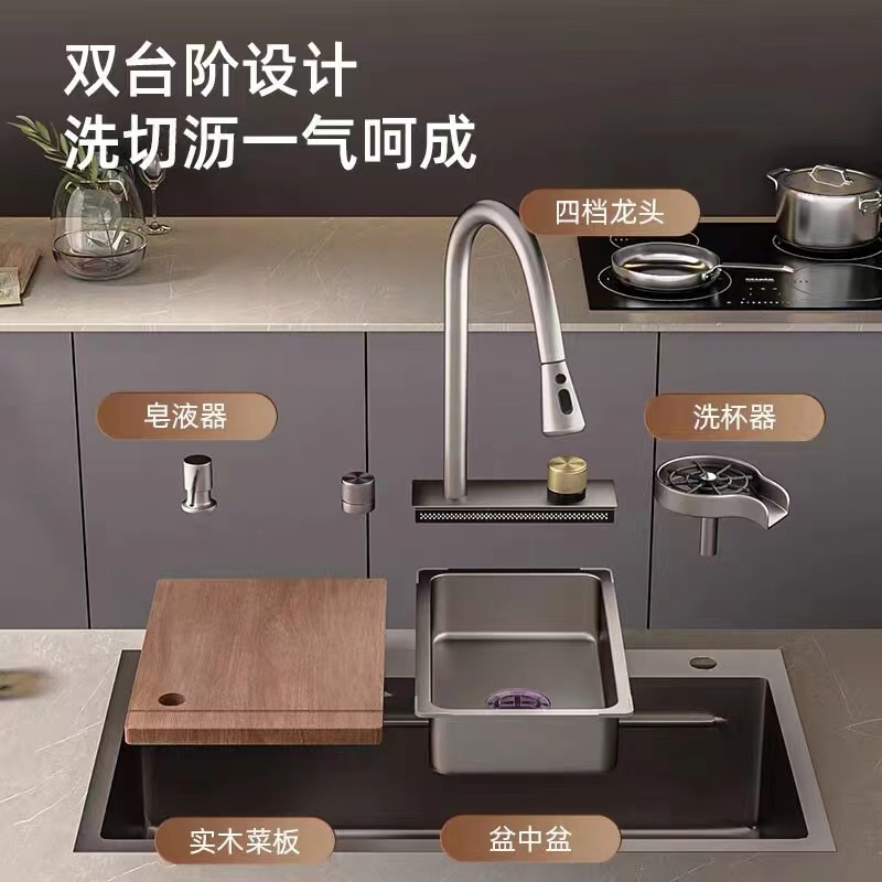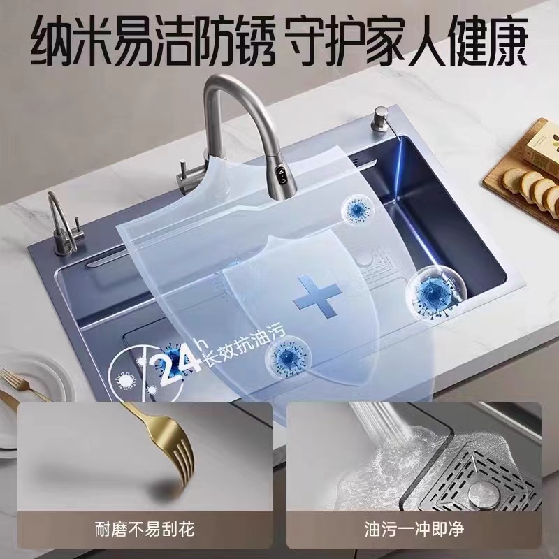 Flying Rain Falls Sink Large Single Tank Nano 304 Stainless Steel Kitchen Home Hand Thickened Dishwashing Basin Wash Basin-Taobao
