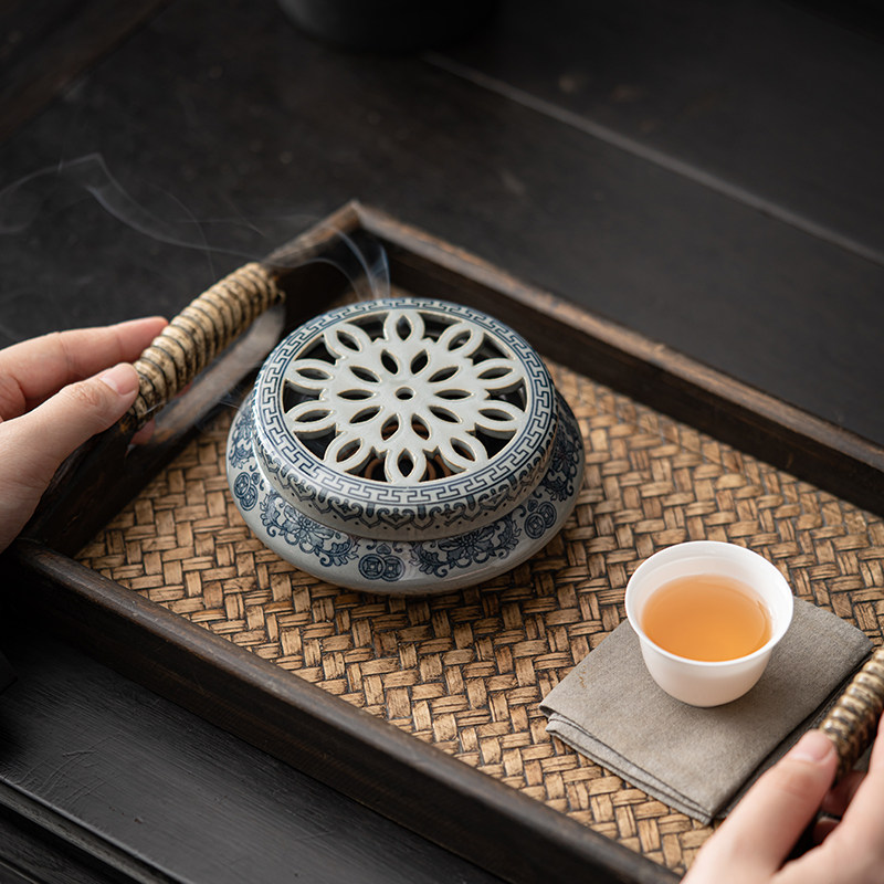 Dow one thousand ceramic imitation ancient green flower scented oven sandalwood Fragrant Incense Burner for Home Indoor Book Room Tea Room Creative Smoked Incense Burner-Taobao