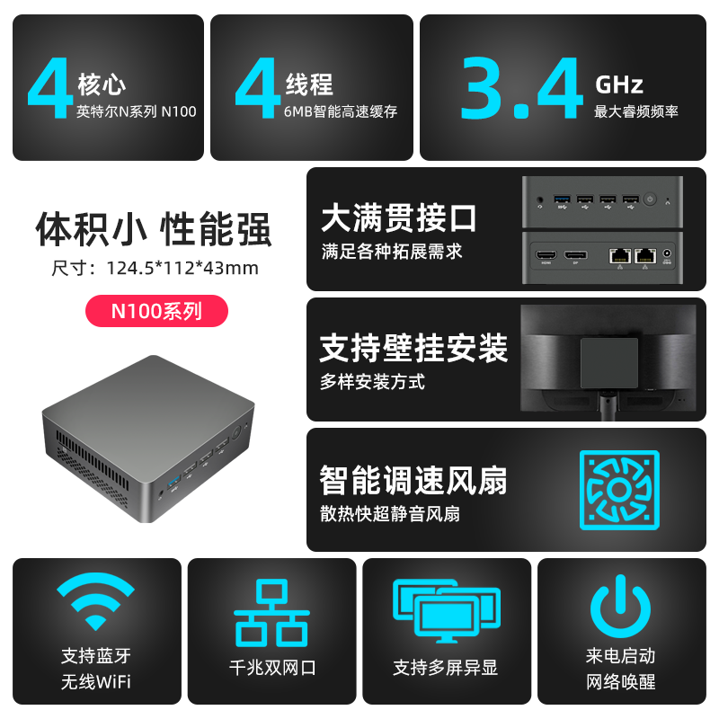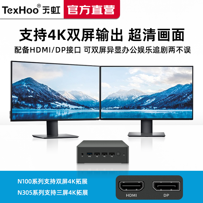 Tianhong Mini host 12 generation N100 multiple open micro computer no graphics card NUC quasi-system home office small desktop low power consumption one thousand trillion double net soft routing portable mini host-Tao