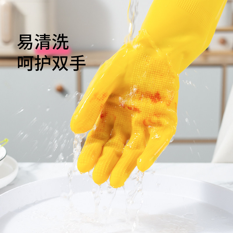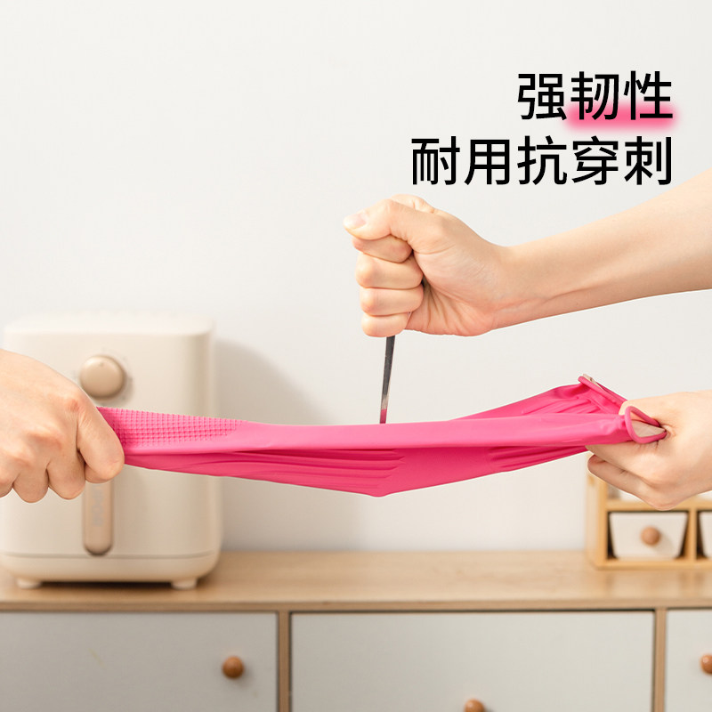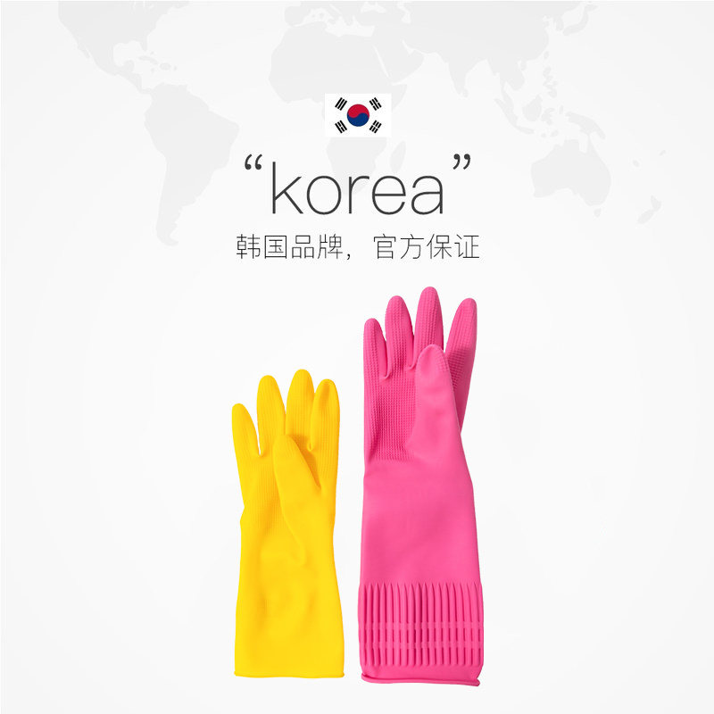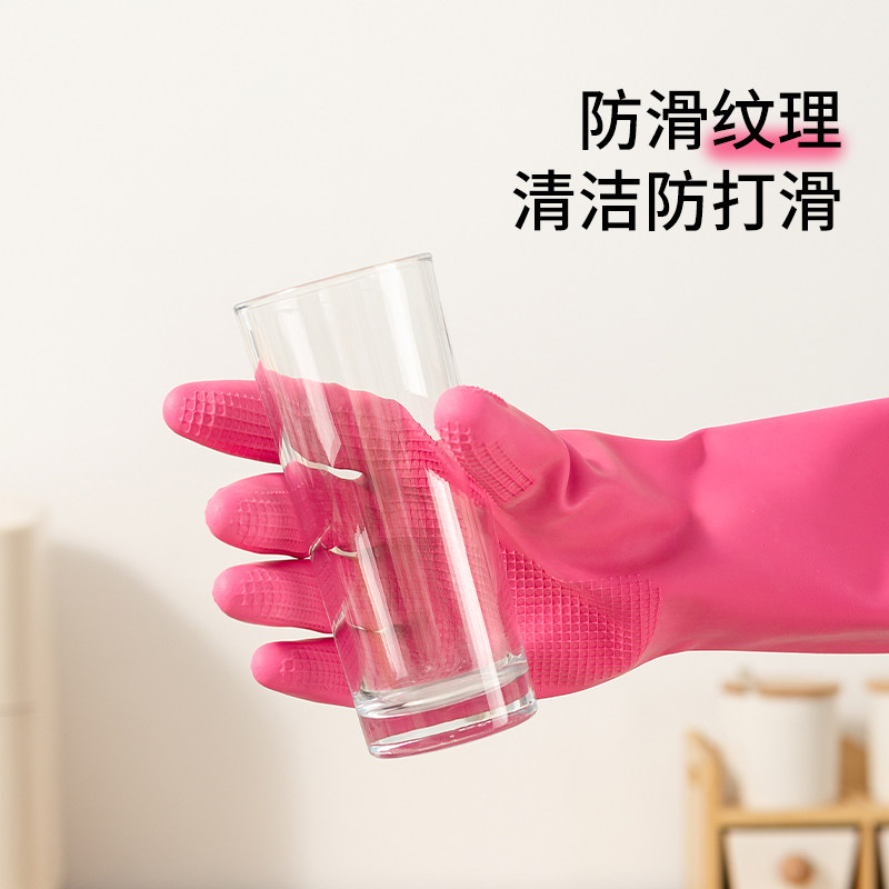(Self-operated) LOCK&LOCK household kitchen thickened dishwashing latex gloves durable cleaning housework waterproof women
