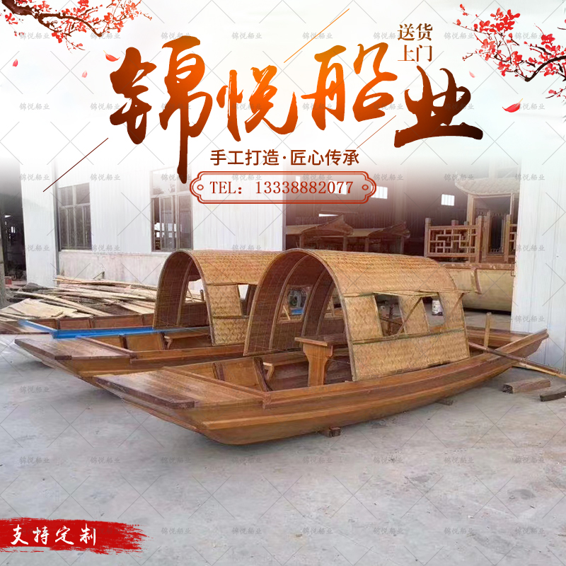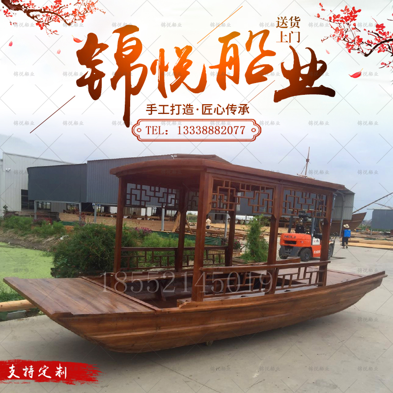 Wooden boat fishing boat solid wood water dining painting Boat Electric Sightseeing Tour Hand-drawn Scull Imitation Ancient Urcanopy Decorated Flower Boat-Taobao