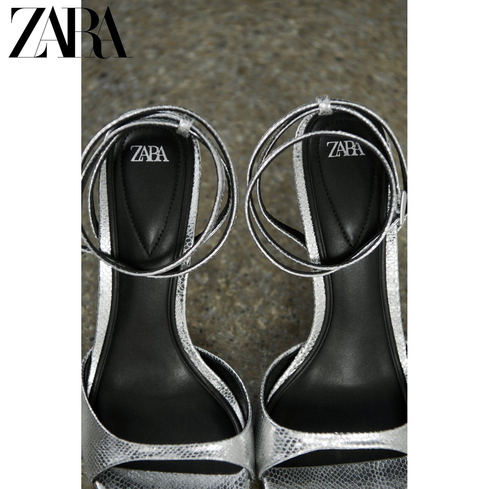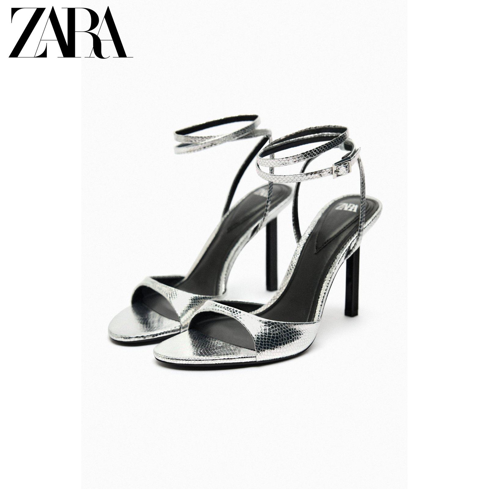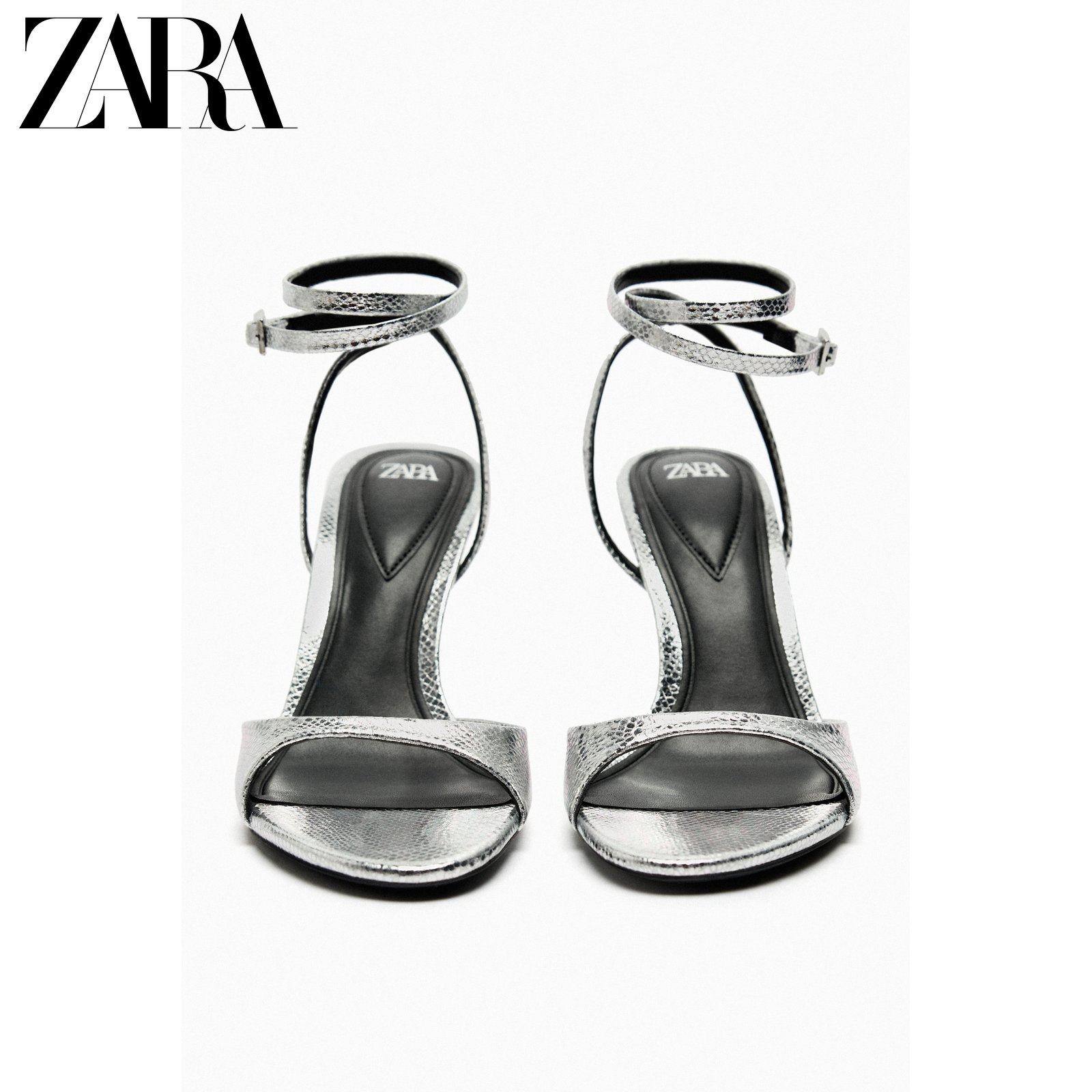 ZARA Discount Season TRF women's shoes silver ankle studs with high heel sandals 3308210808-Taobao