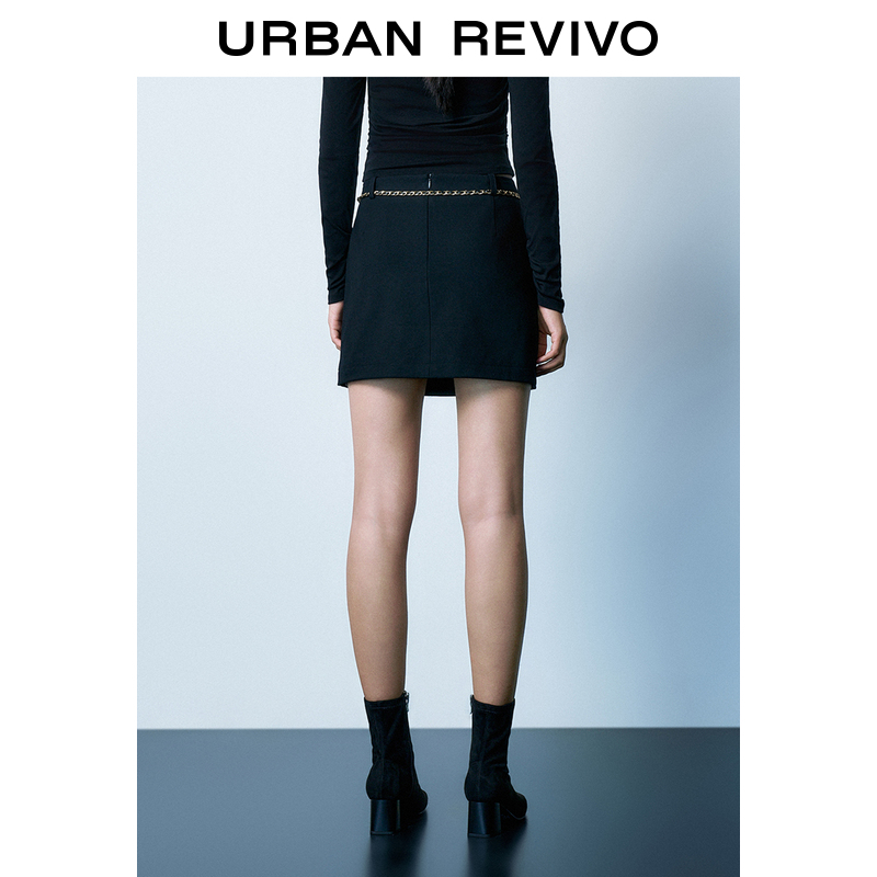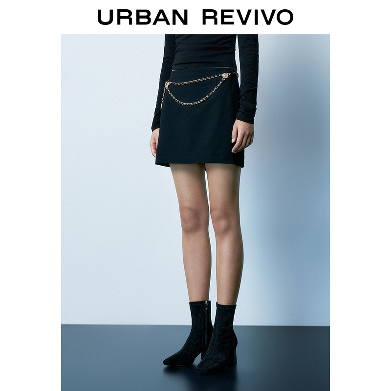 (UR charm) UR2023 autumn winter new women's clothing trendy design senses waist chain straight cylinder half skirt UWG530046-Taobao