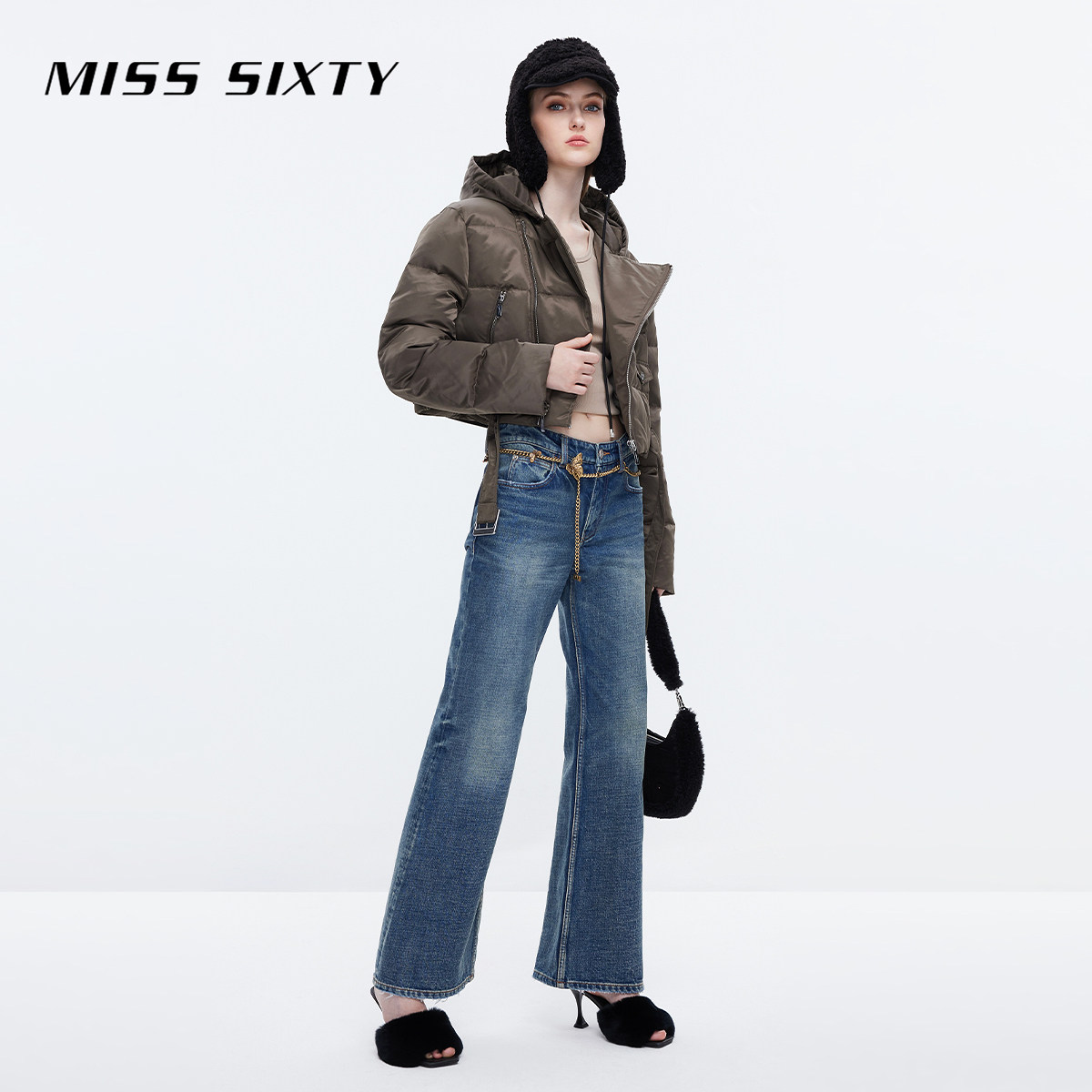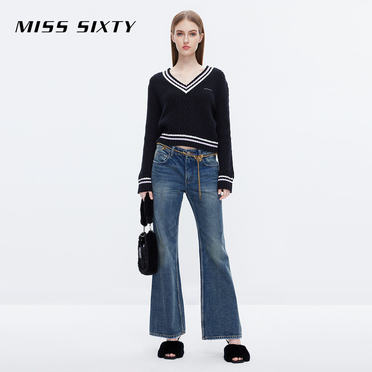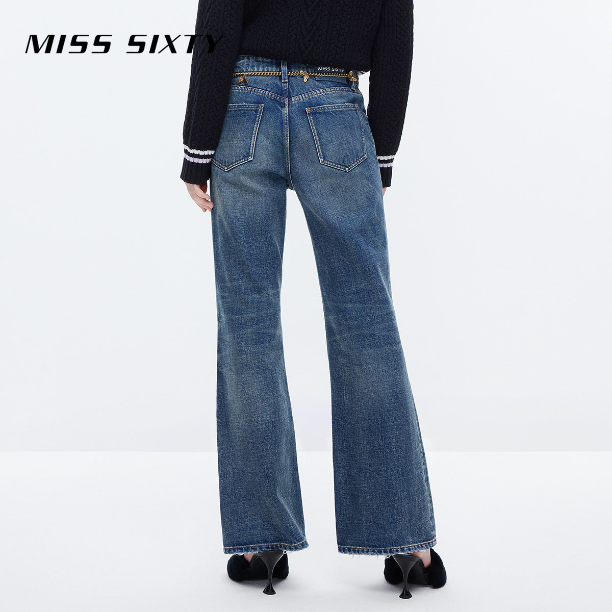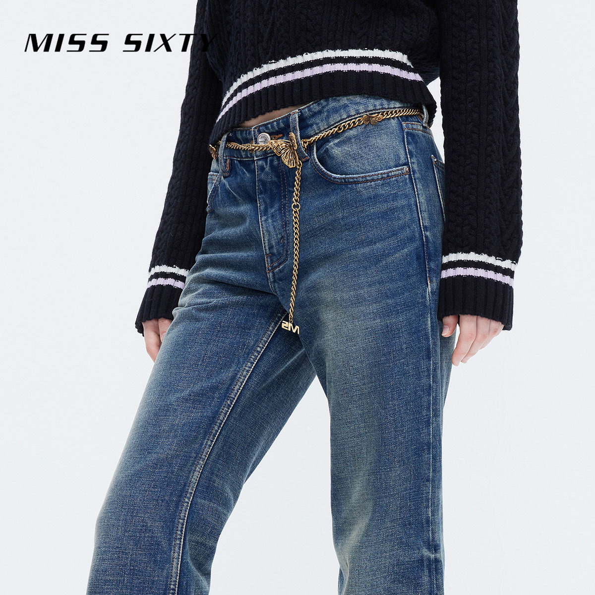 Miss Sixty2023 Winter new jeans women's retro grinding butterfly chain to be slim and slim-Laterpants-Taobao