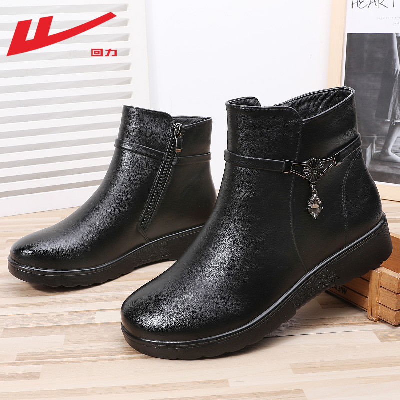 Back Force Mom Shoes Shoes Women Shoes Seniors Cotton Shoes Women Winter Plus Suede Warm Snowy Boots Middle Aged Leather Face Short Boots-Taobao